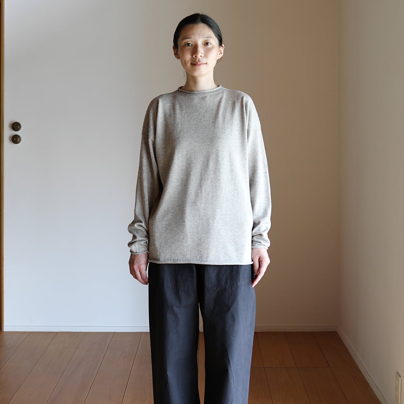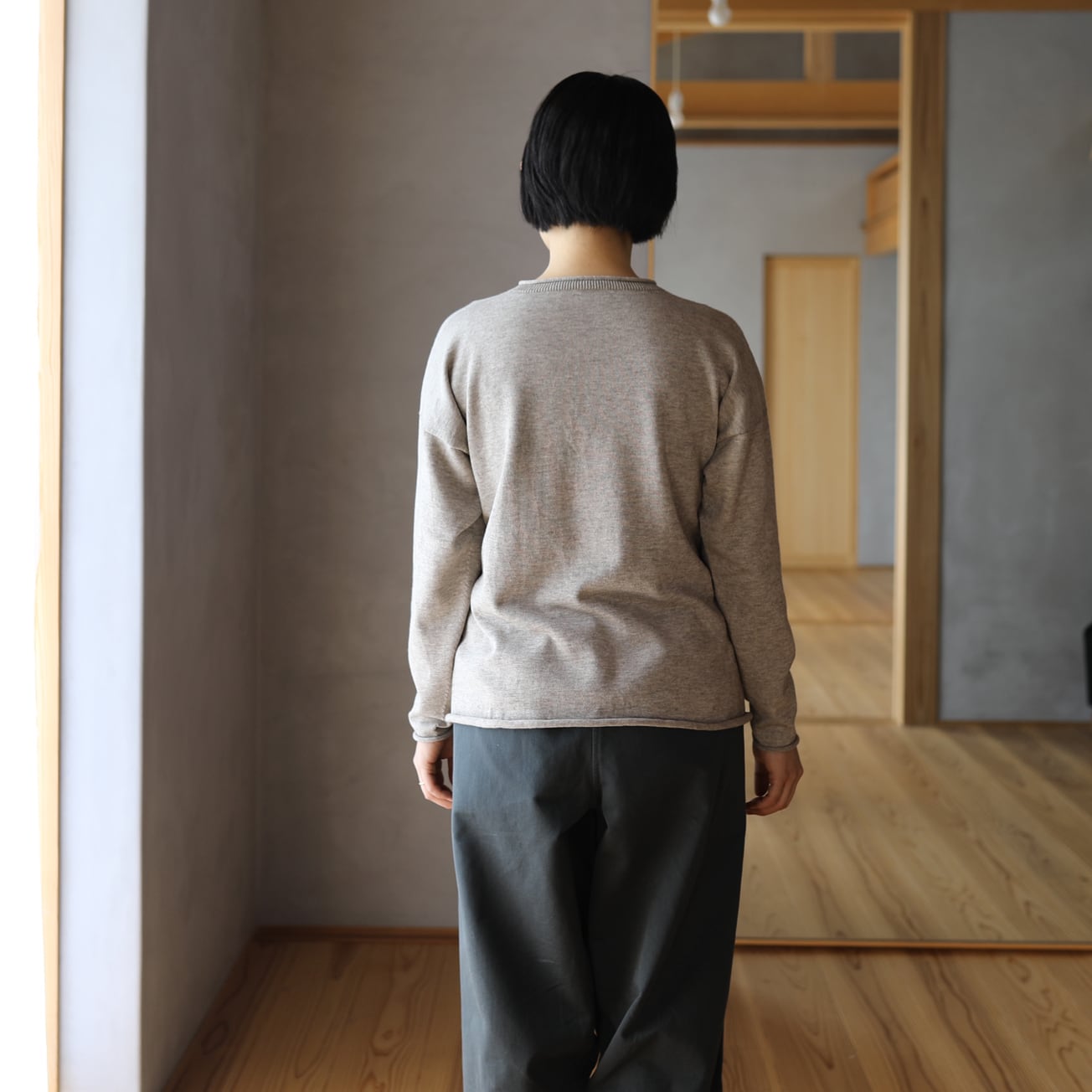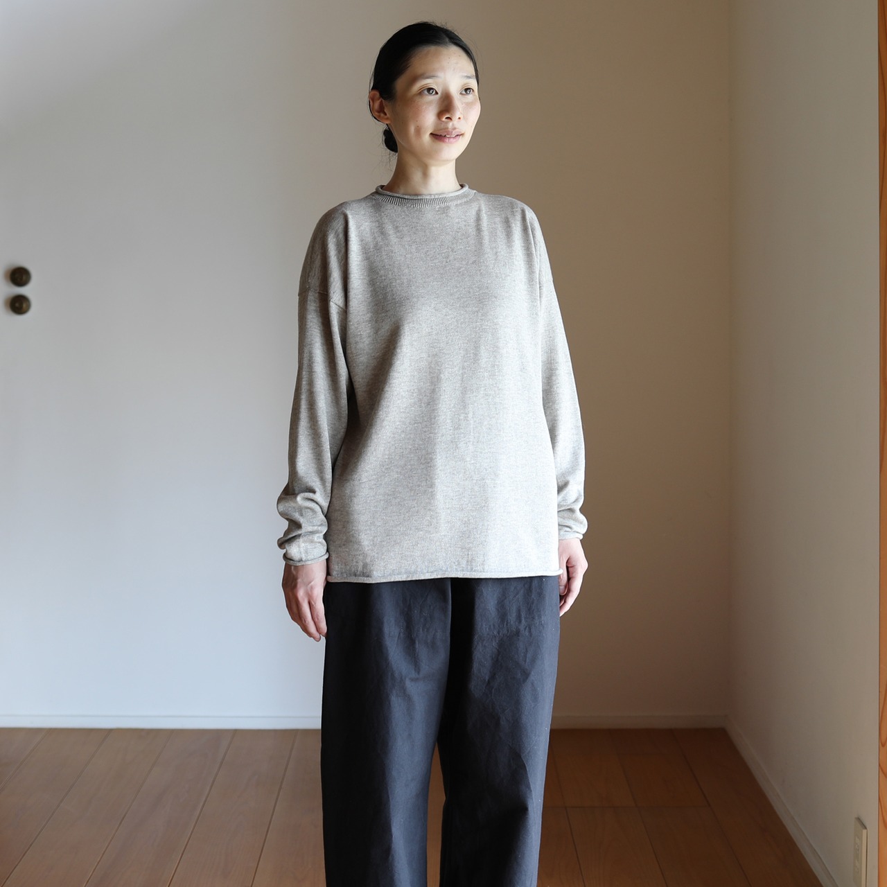 東京八王子のニット工場にてホールガーメント製編にて作りました。