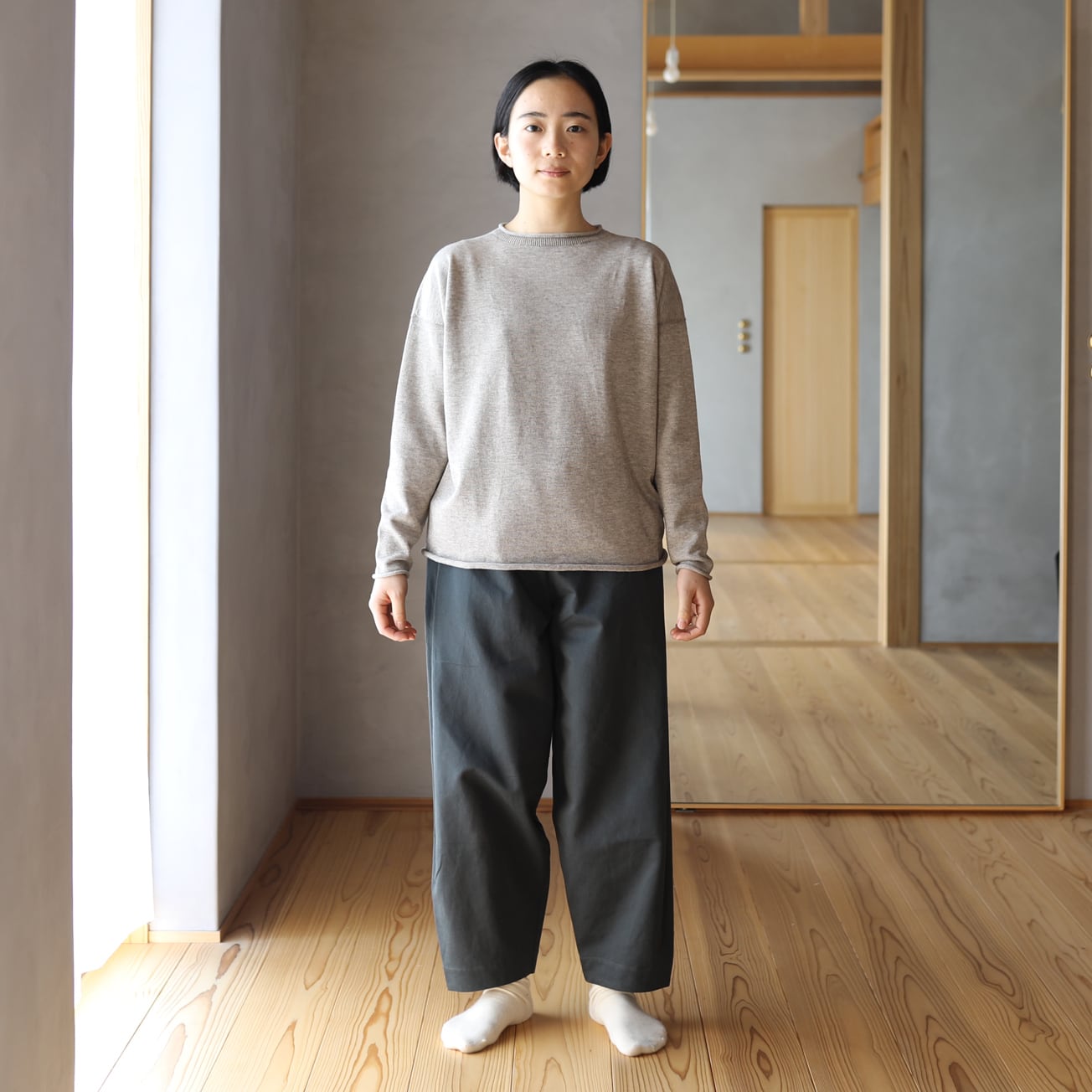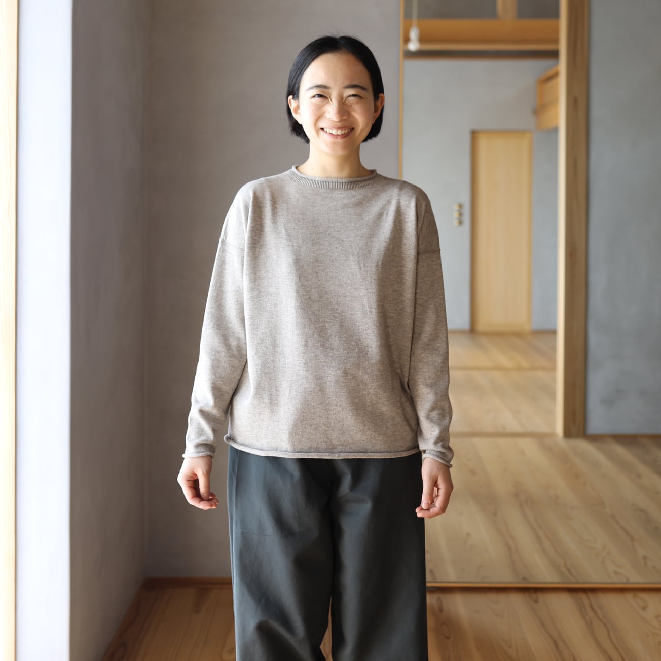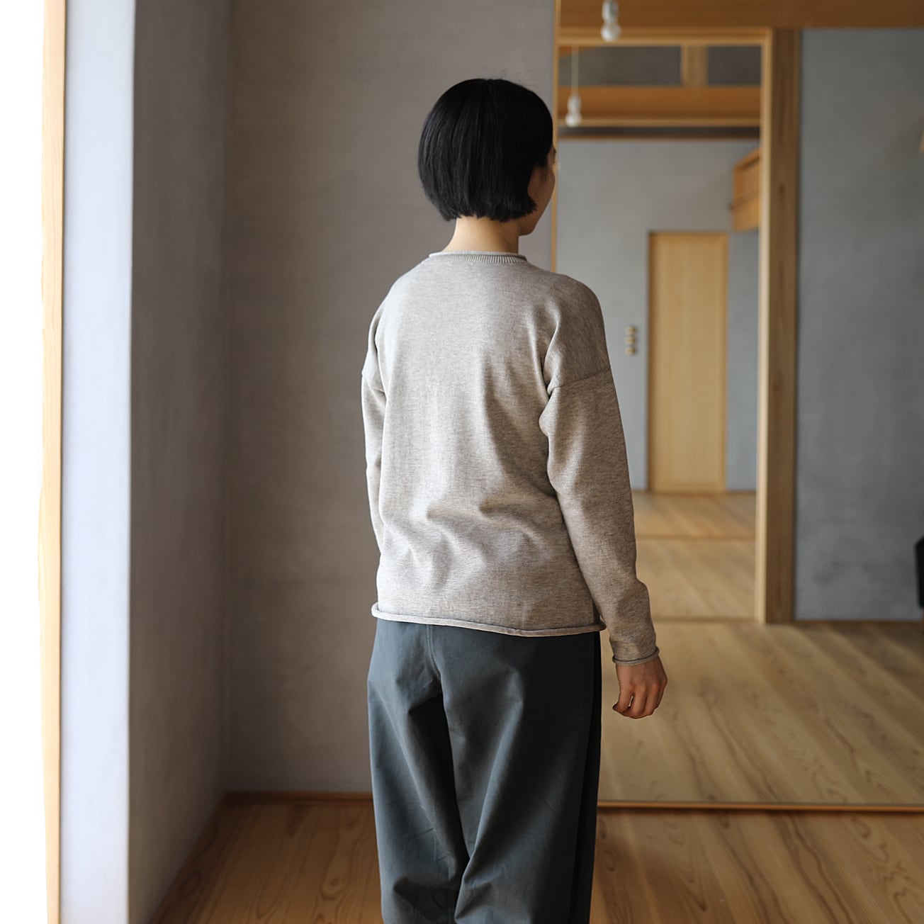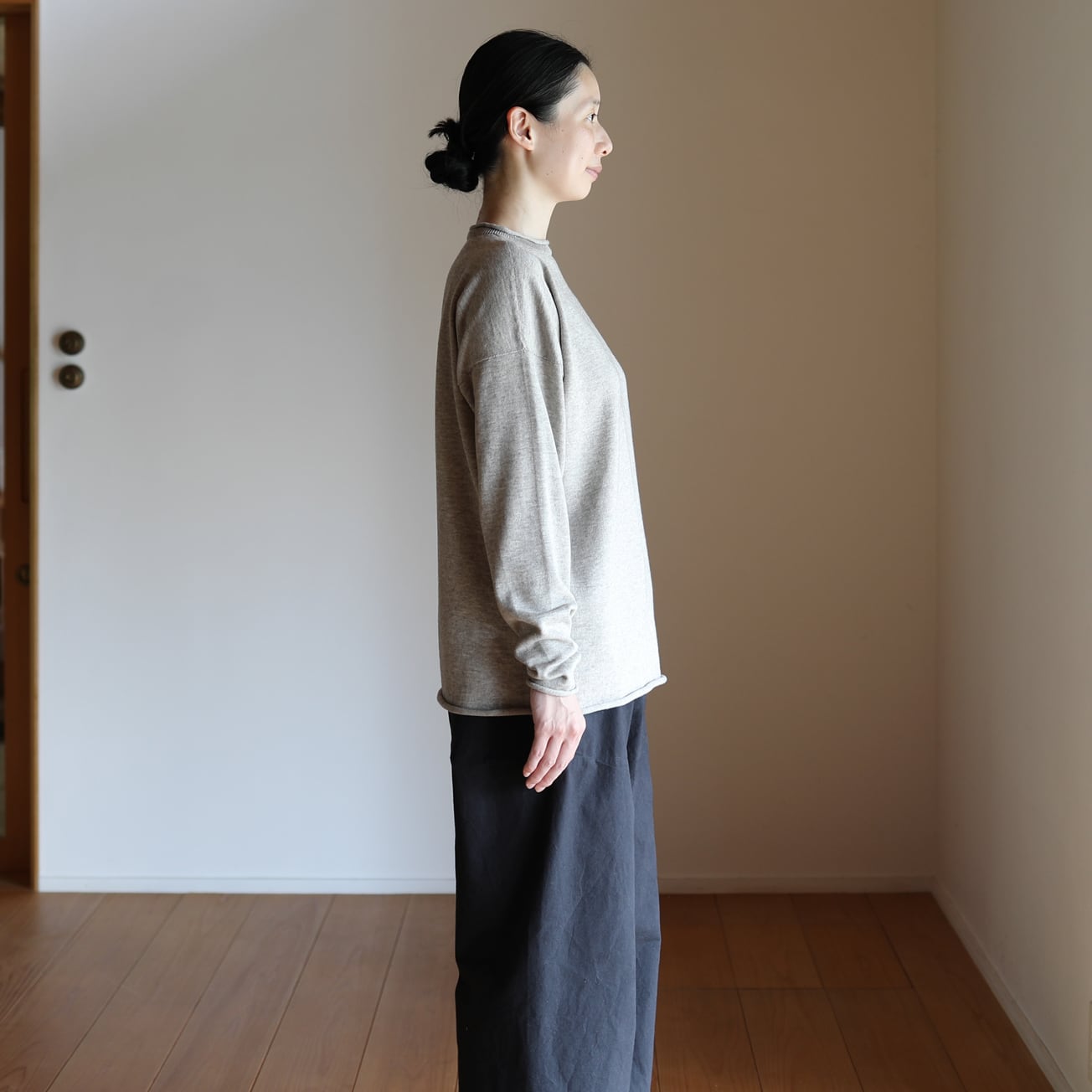 東京八王子のニット工場にてホールガーメント製編にて作りました。
