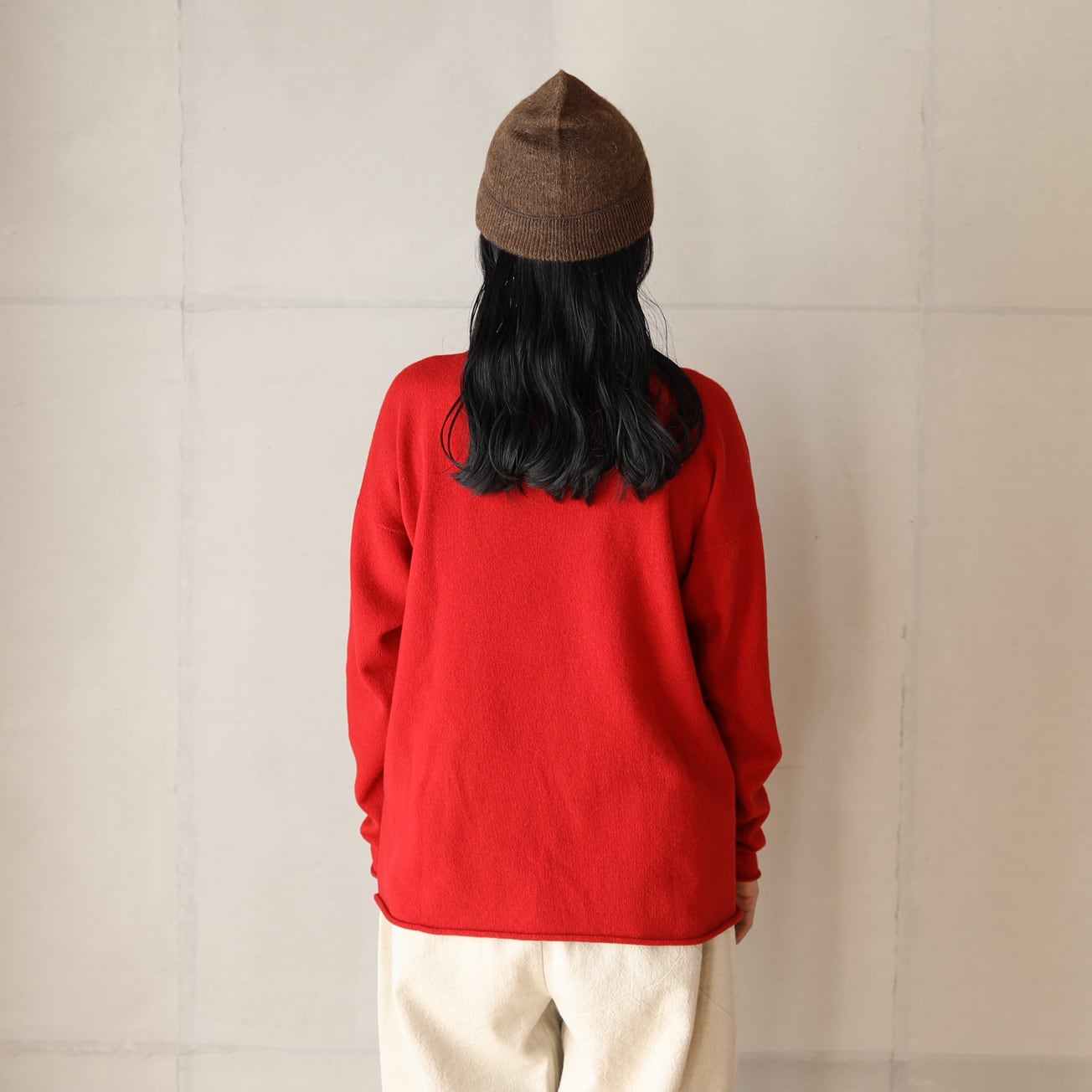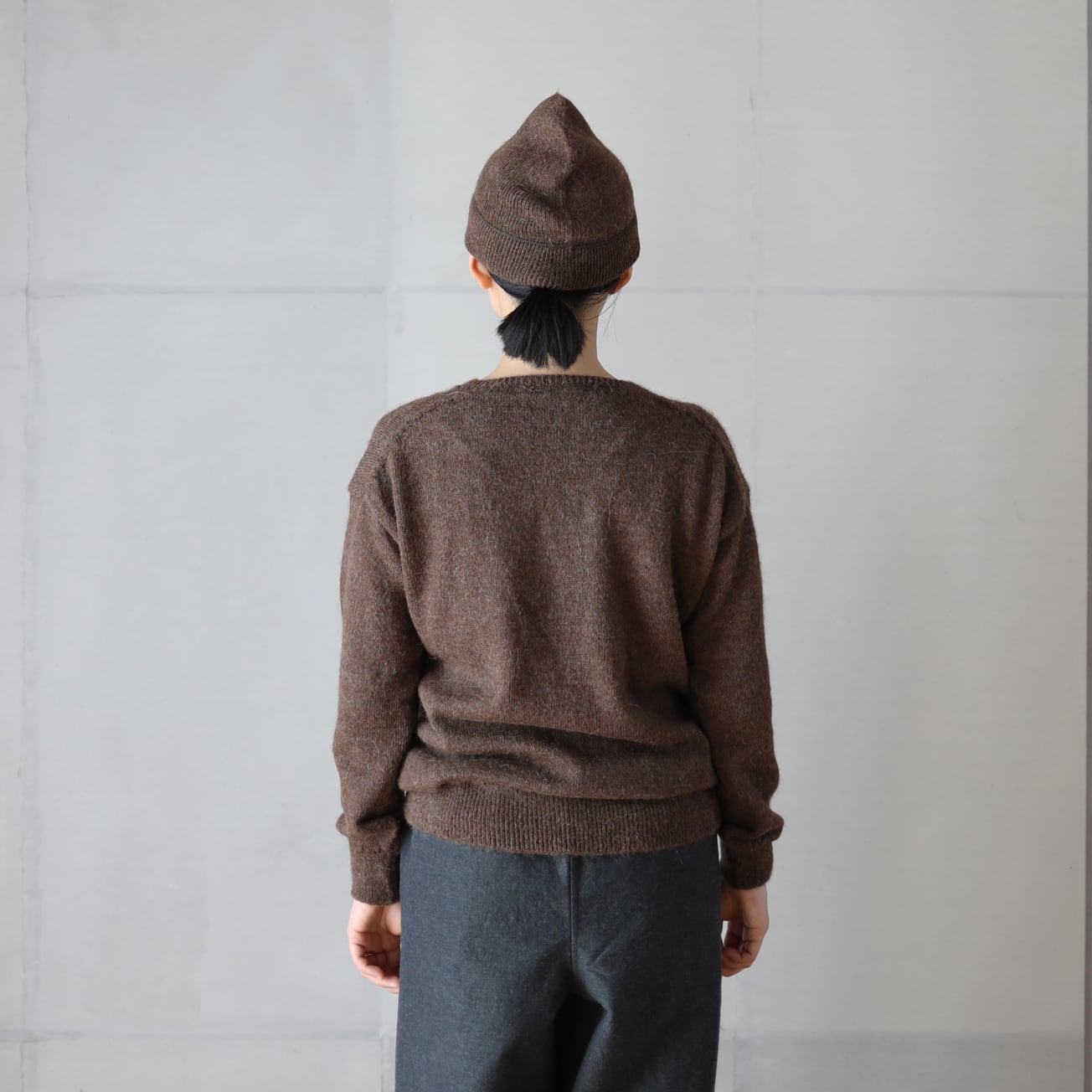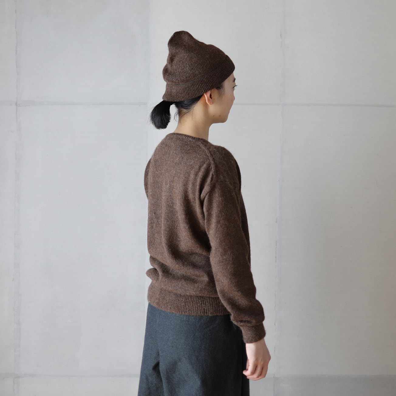 長年セーターに使用している南米のペルー、ボリビア産のベビーアルパカの糸を使用。