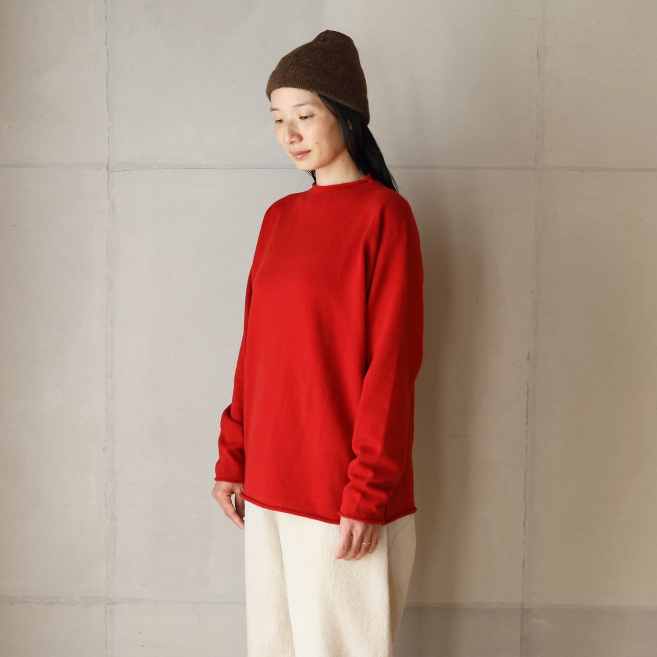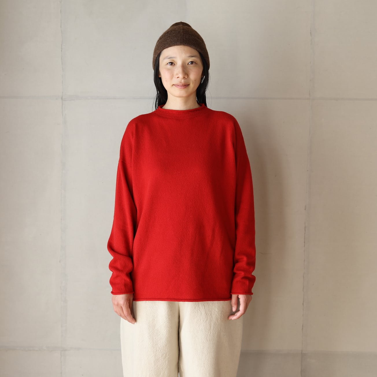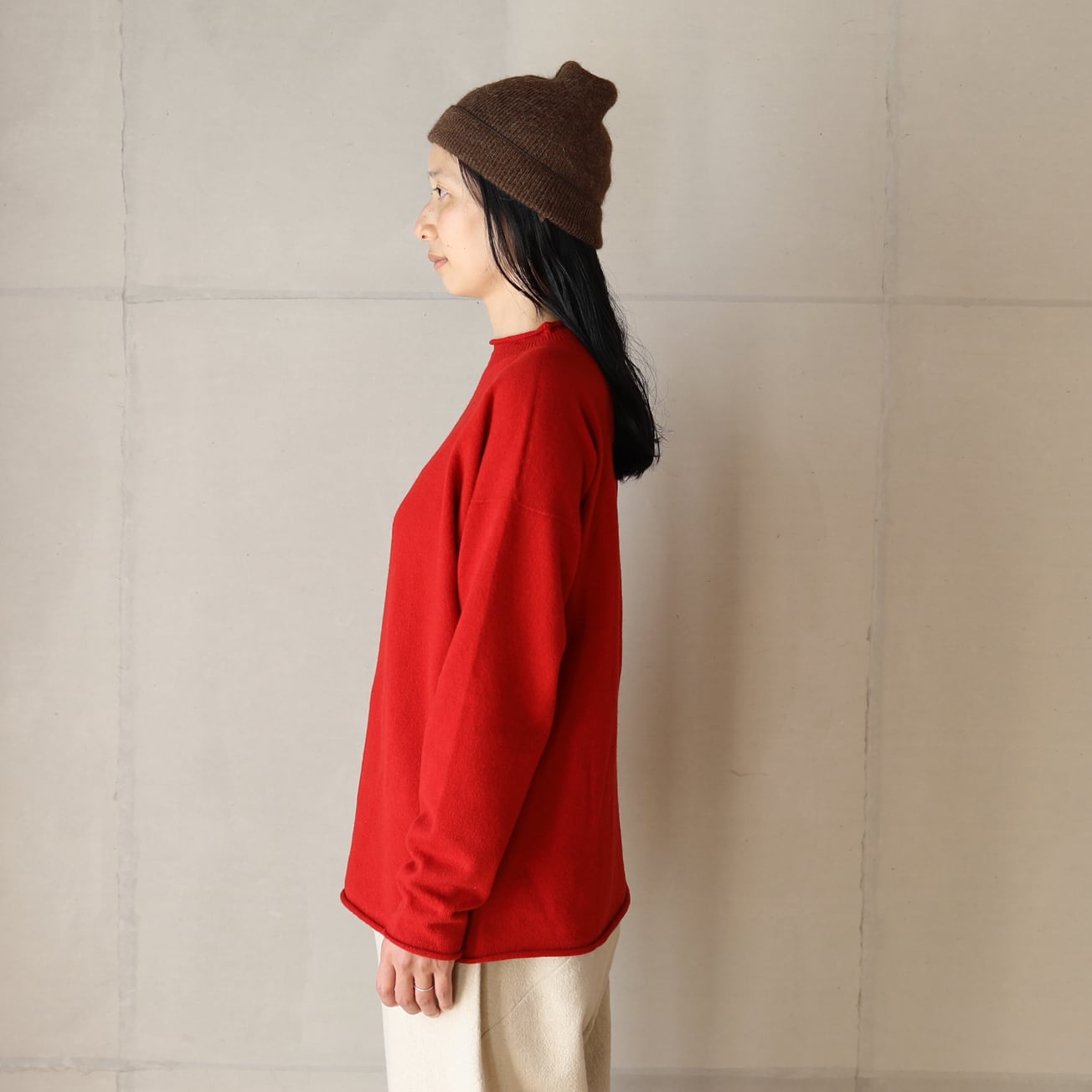 長年セーターに使用している南米のペルー、ボリビア産のベビーアルパカの糸を使用。