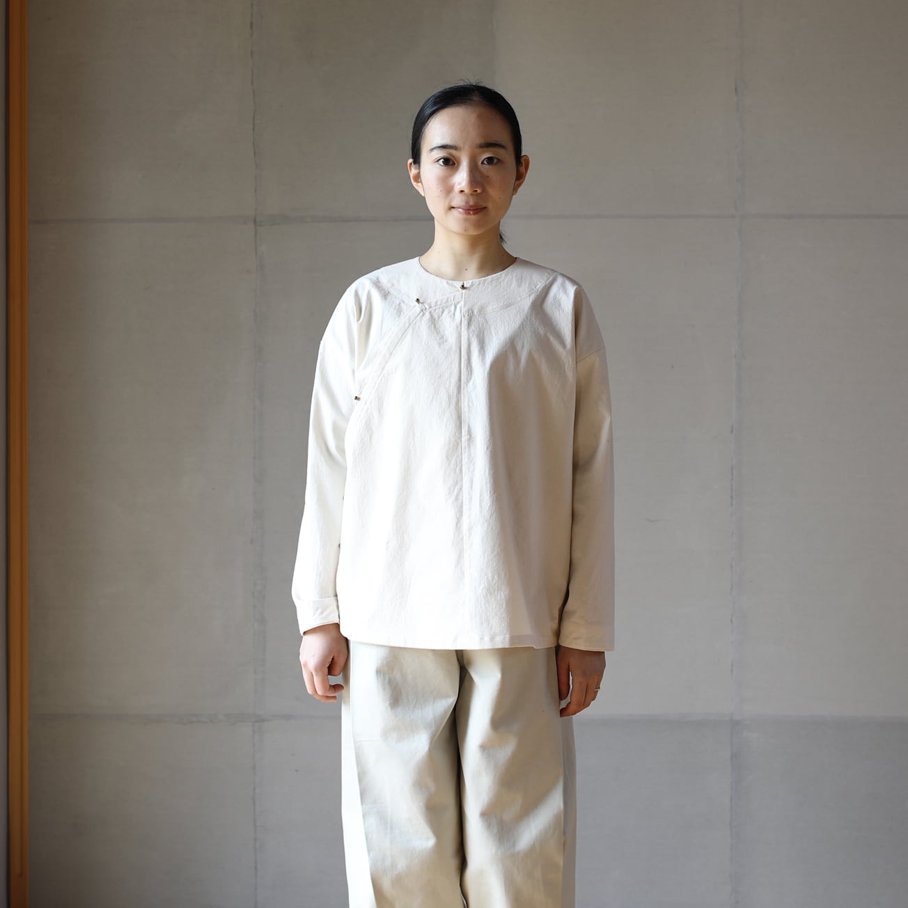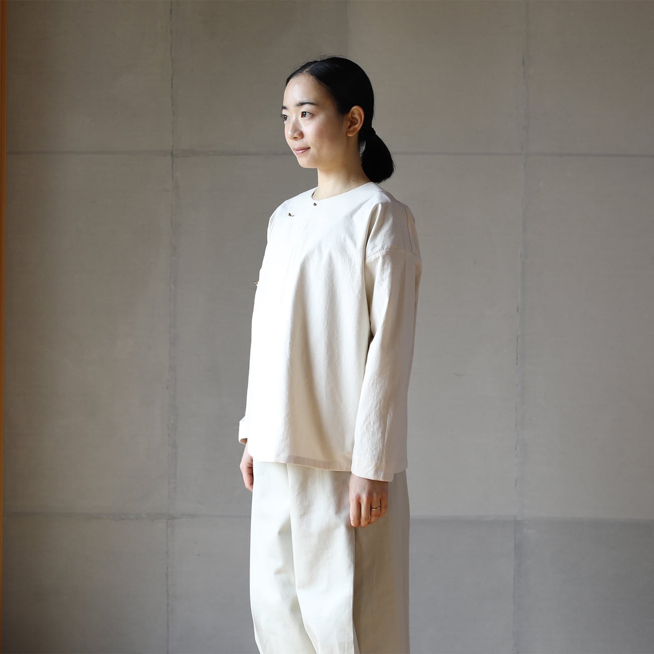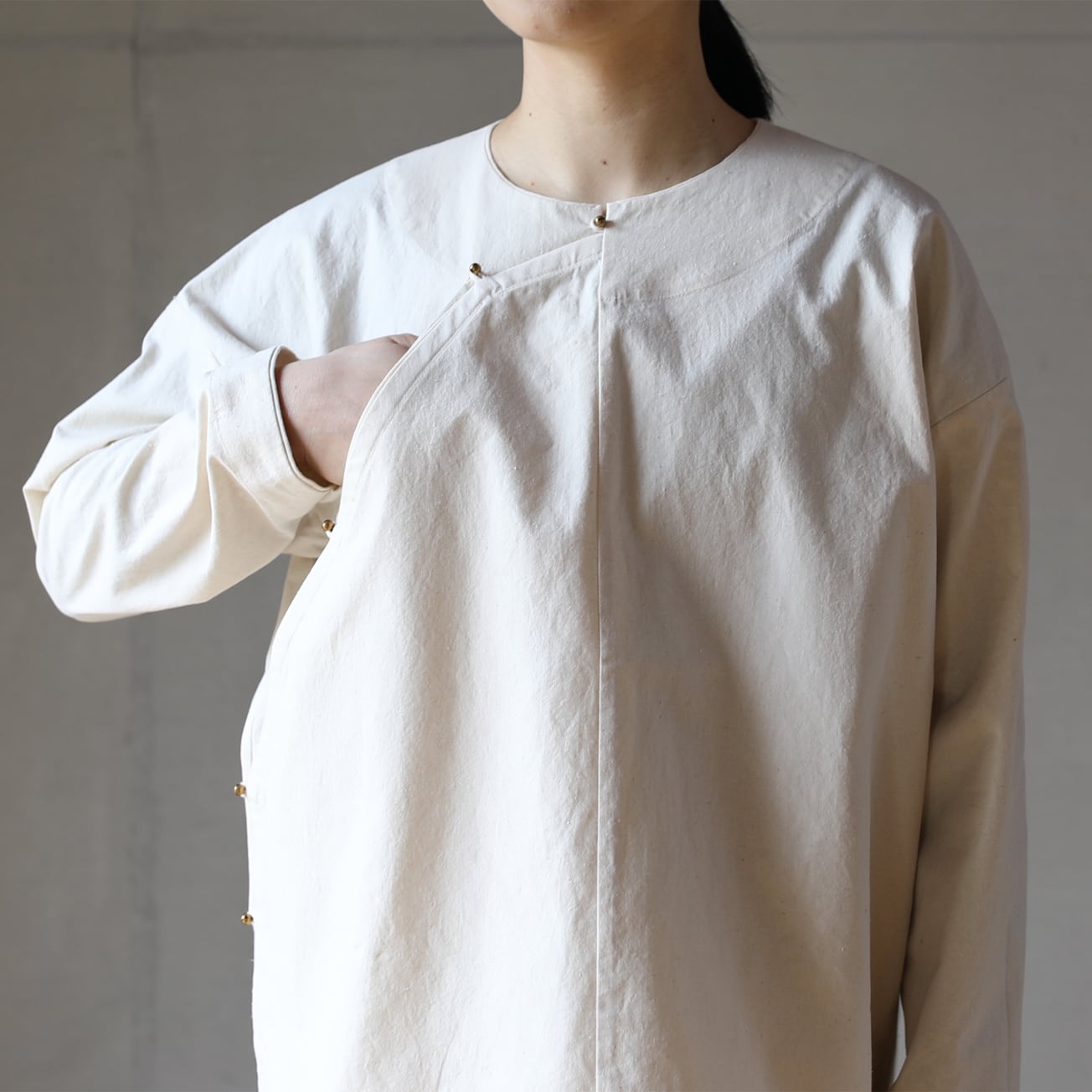 身頃をゆったりと作ったので軽めのジャケットのようにも着られます。