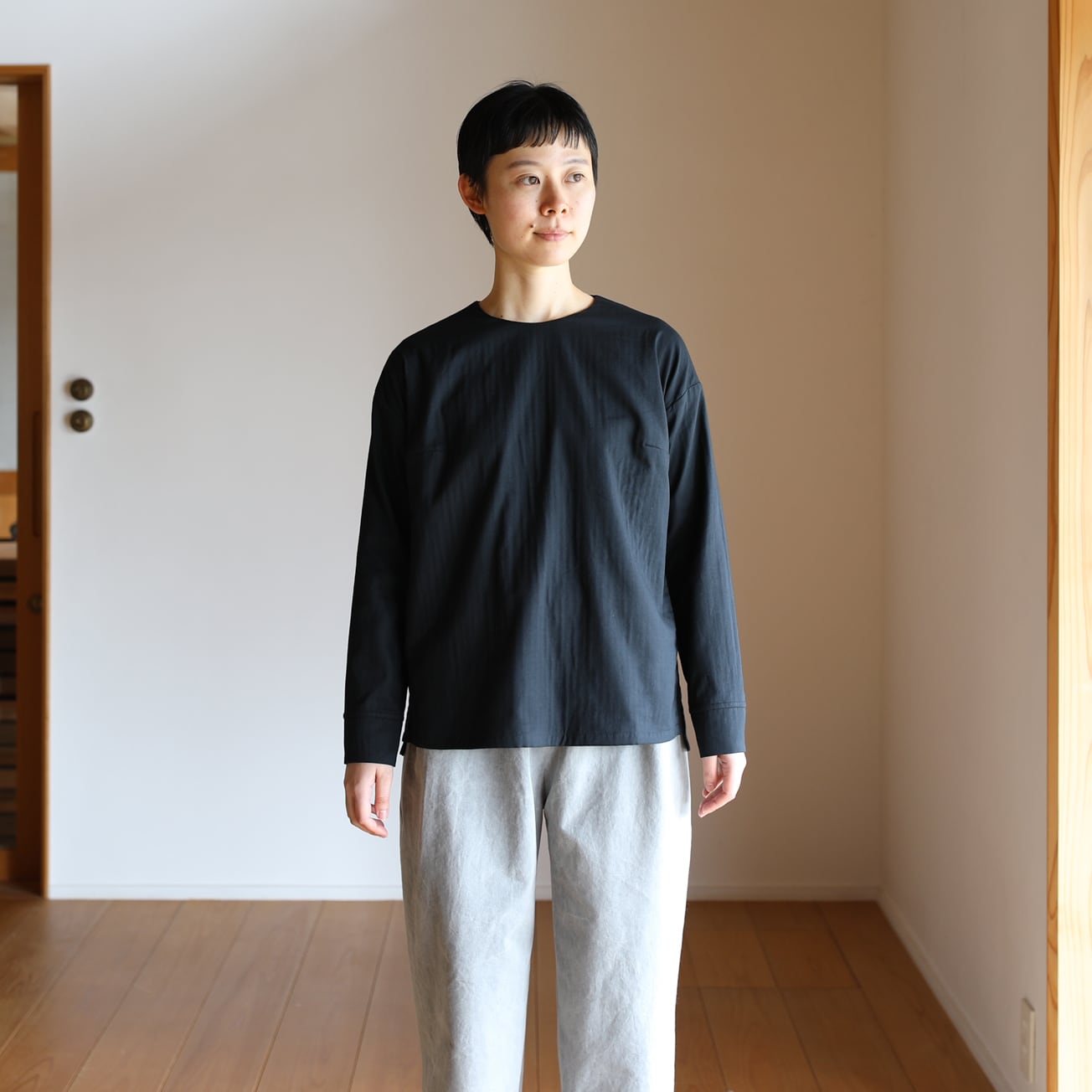 えみおわす定番の丸首ネックのシャツをリニューアル。