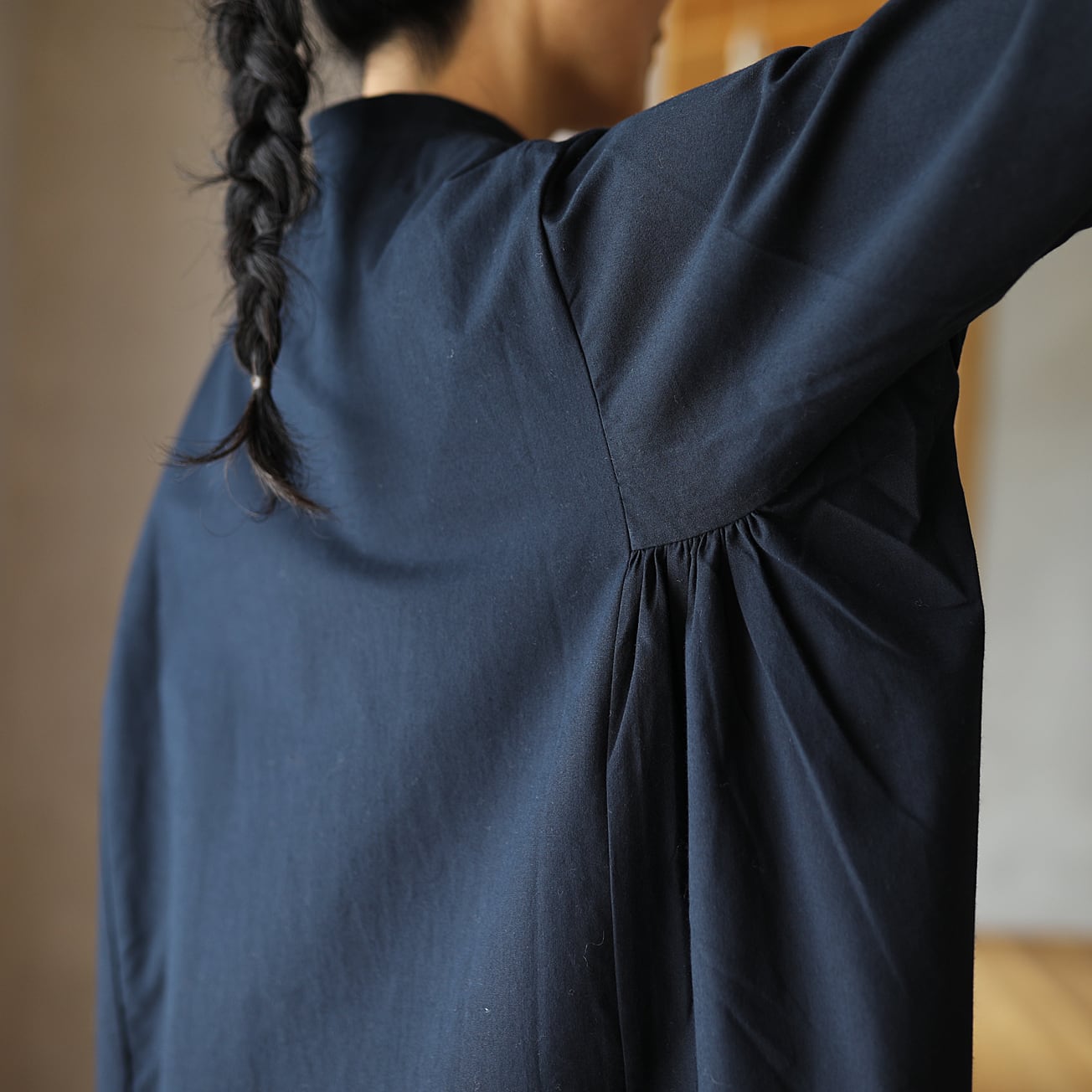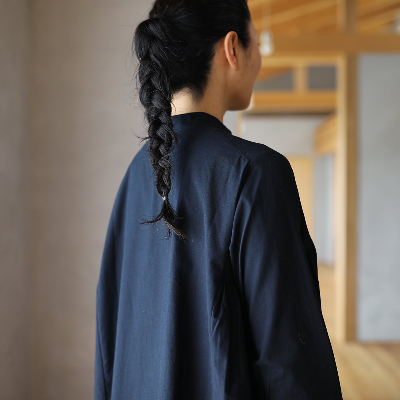 鈴ボタンをひとつつけて、閉じても開けても着られるよう仕様です。