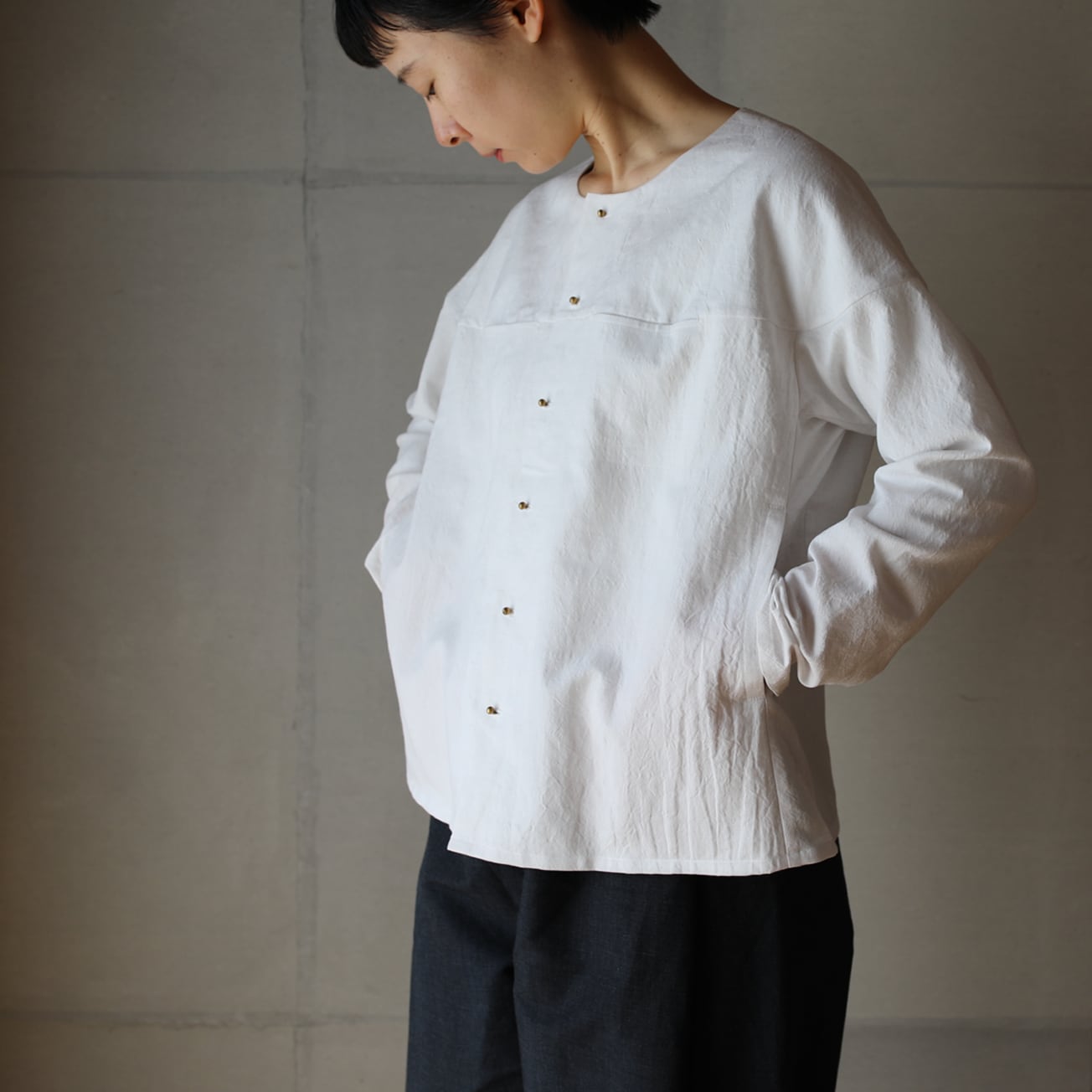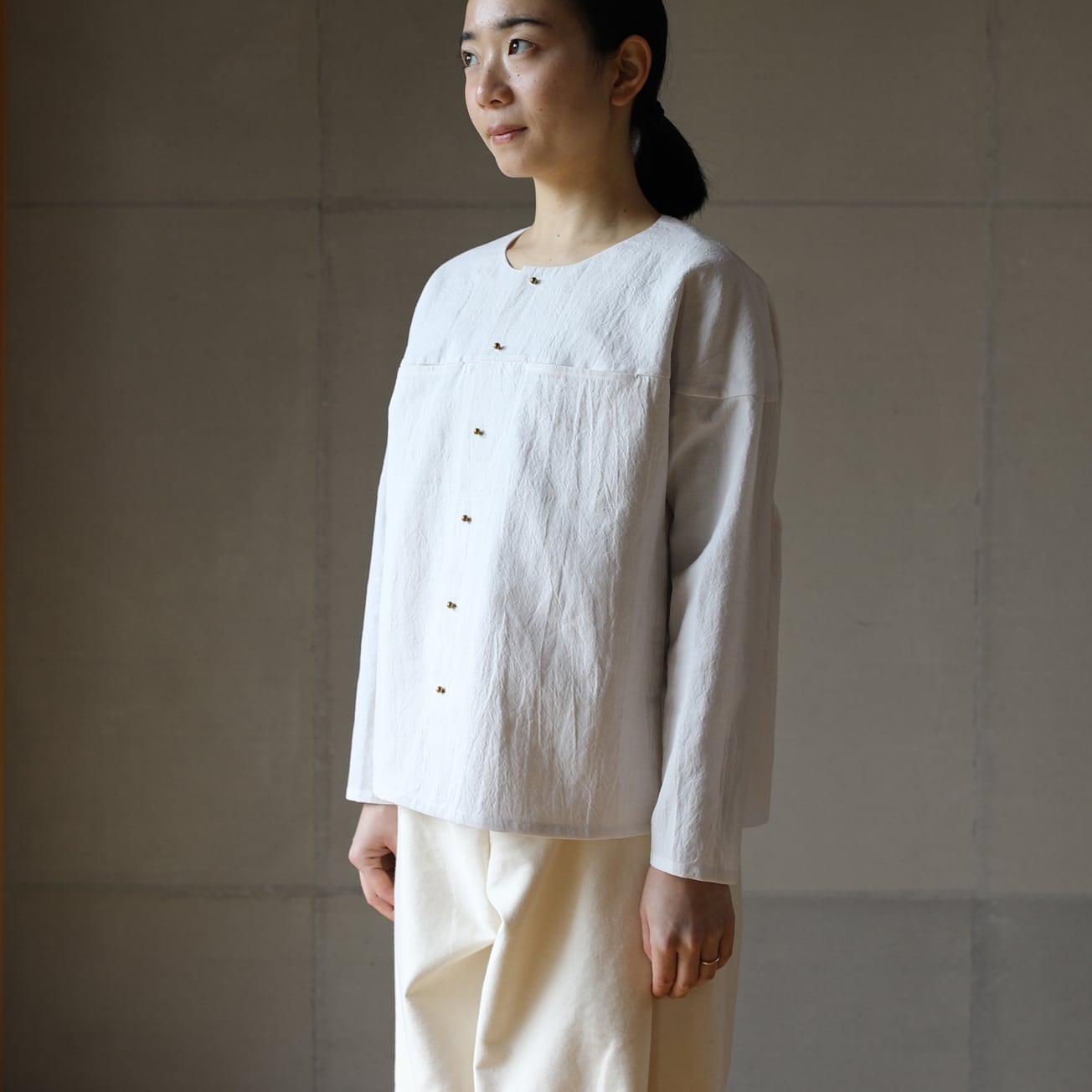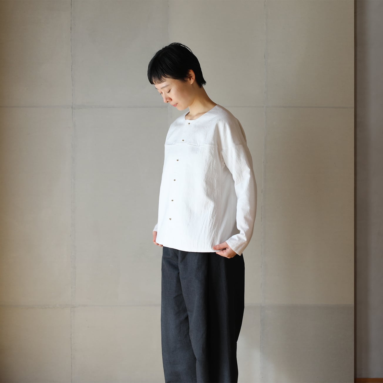 ヨークの切り替えで柔らかな肩のラインが特長のシャツ。