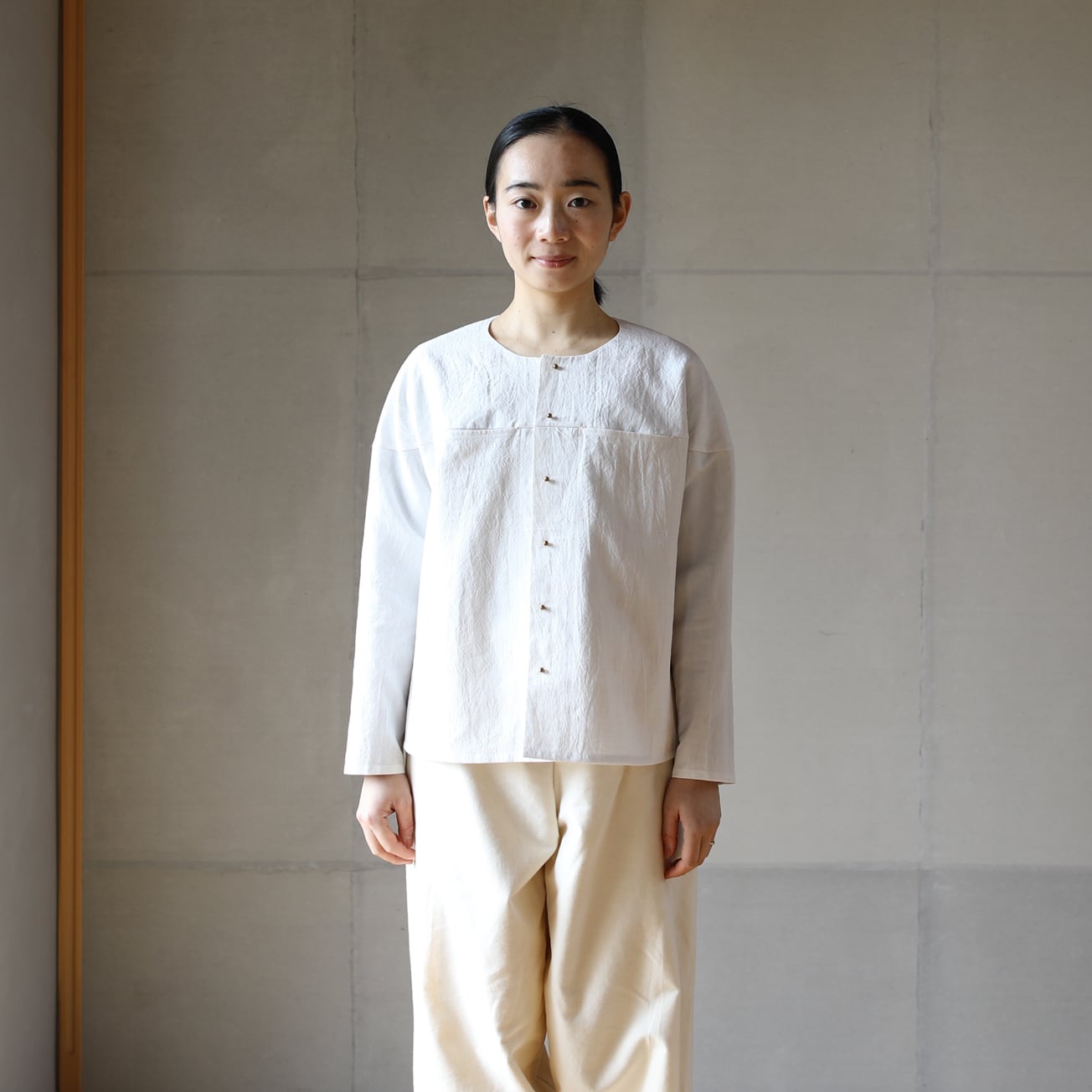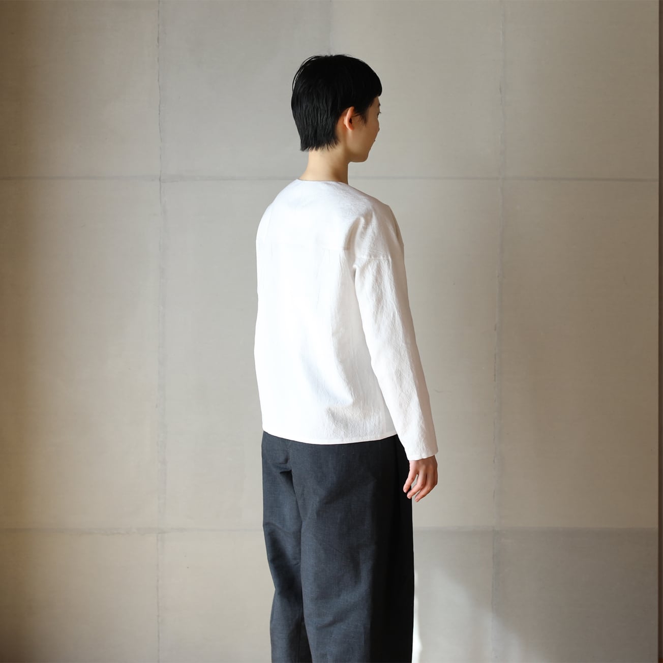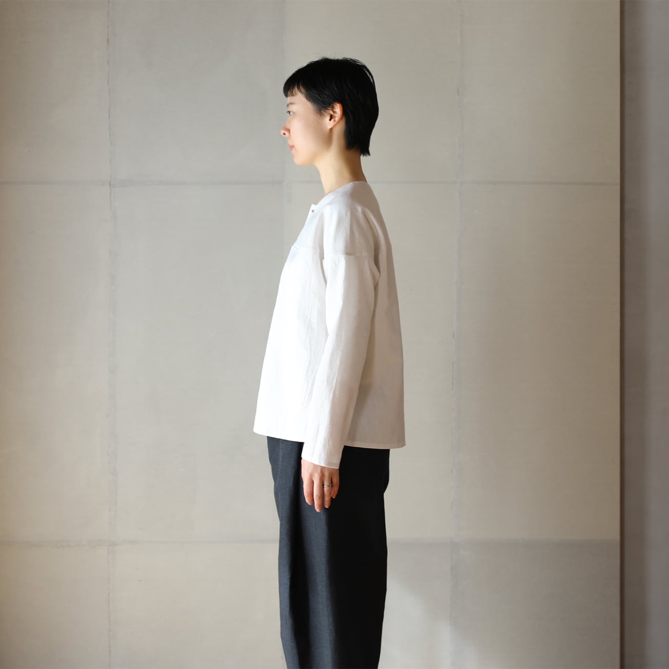 ヨークの切り替えで柔らかな肩のラインが特長のシャツ。