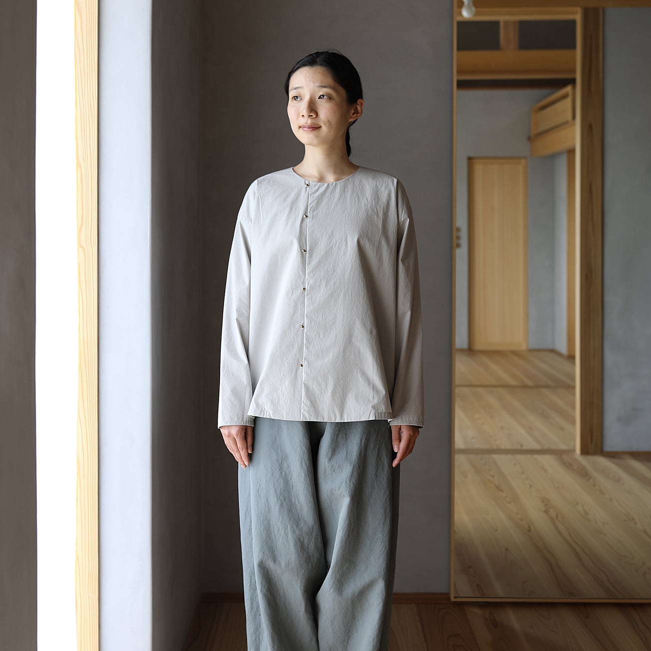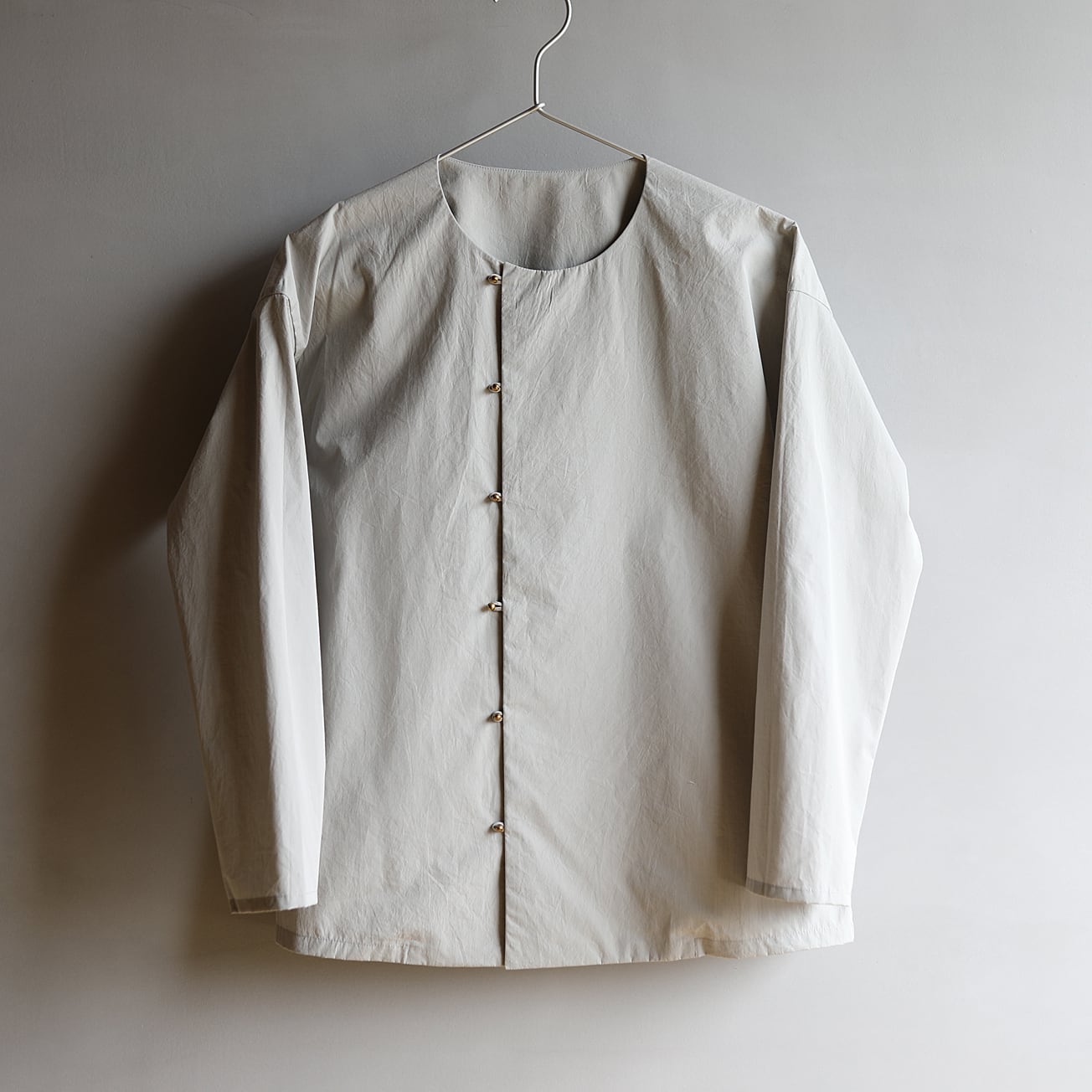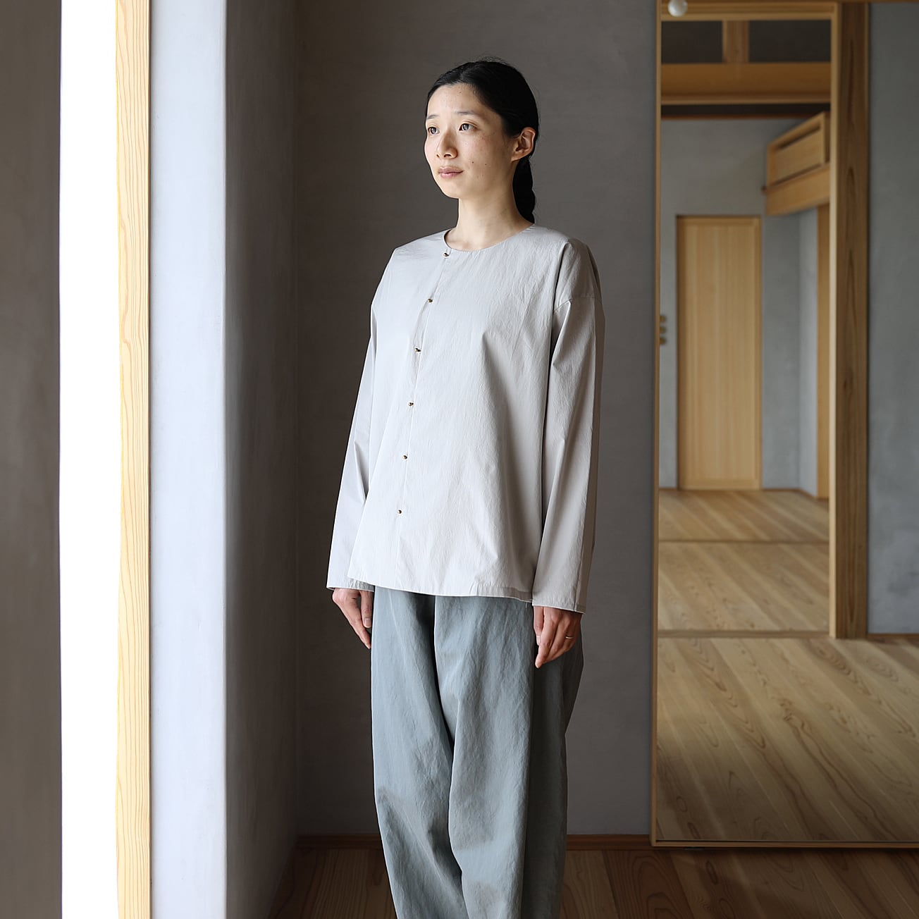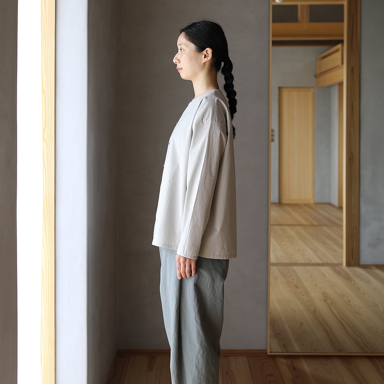 シンプルで着やすく合わせやすく、ボタンの位置を少しサイドにずらすことで特長のあるシャツになりました。