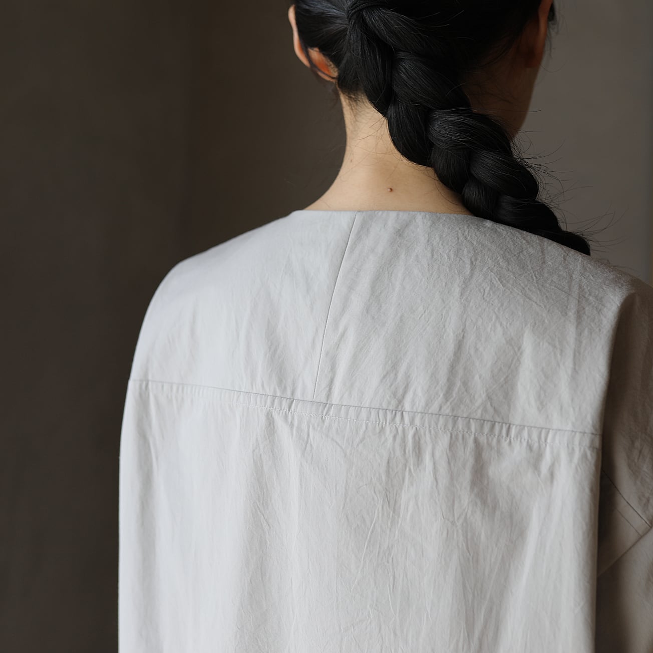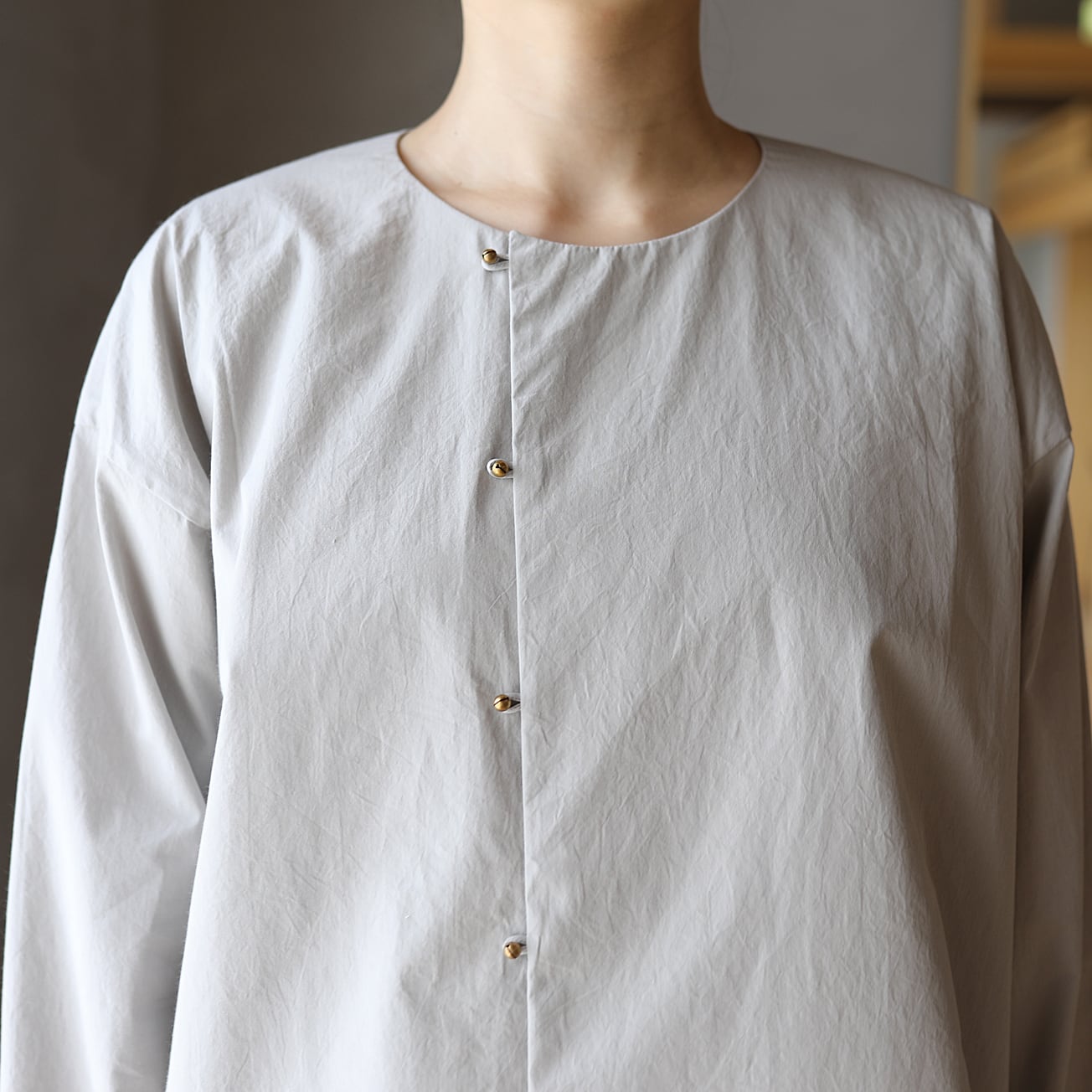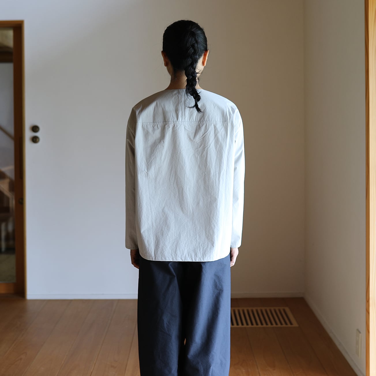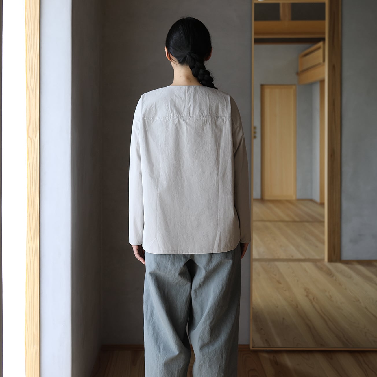 シンプルで着やすく合わせやすく、ボタンの位置を少しサイドにずらすことで特長のあるシャツになりました。