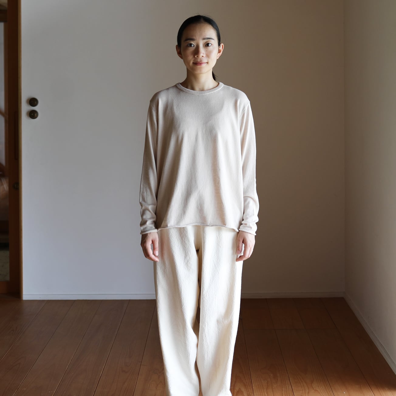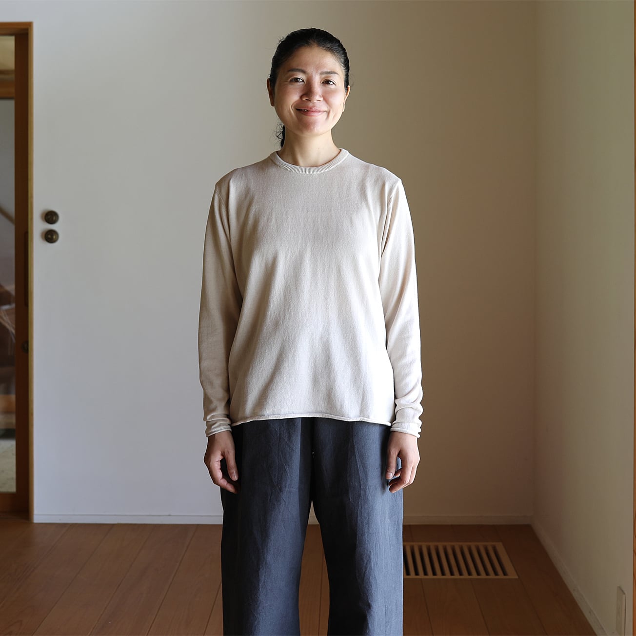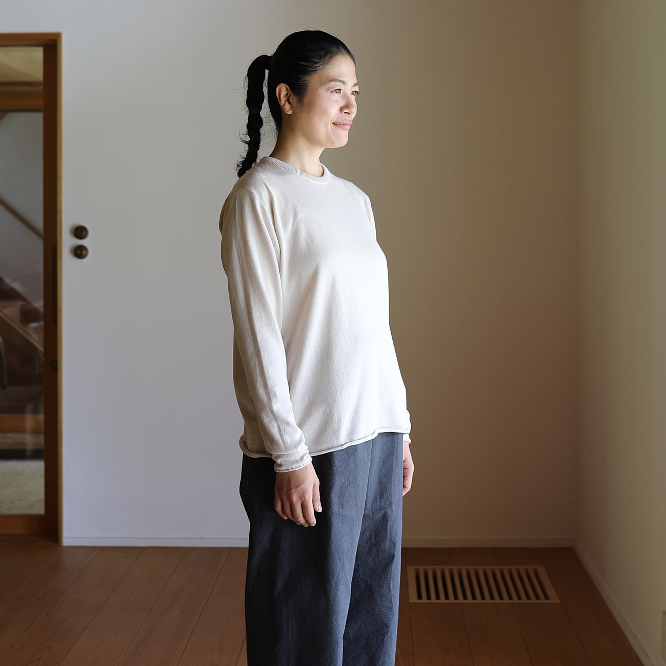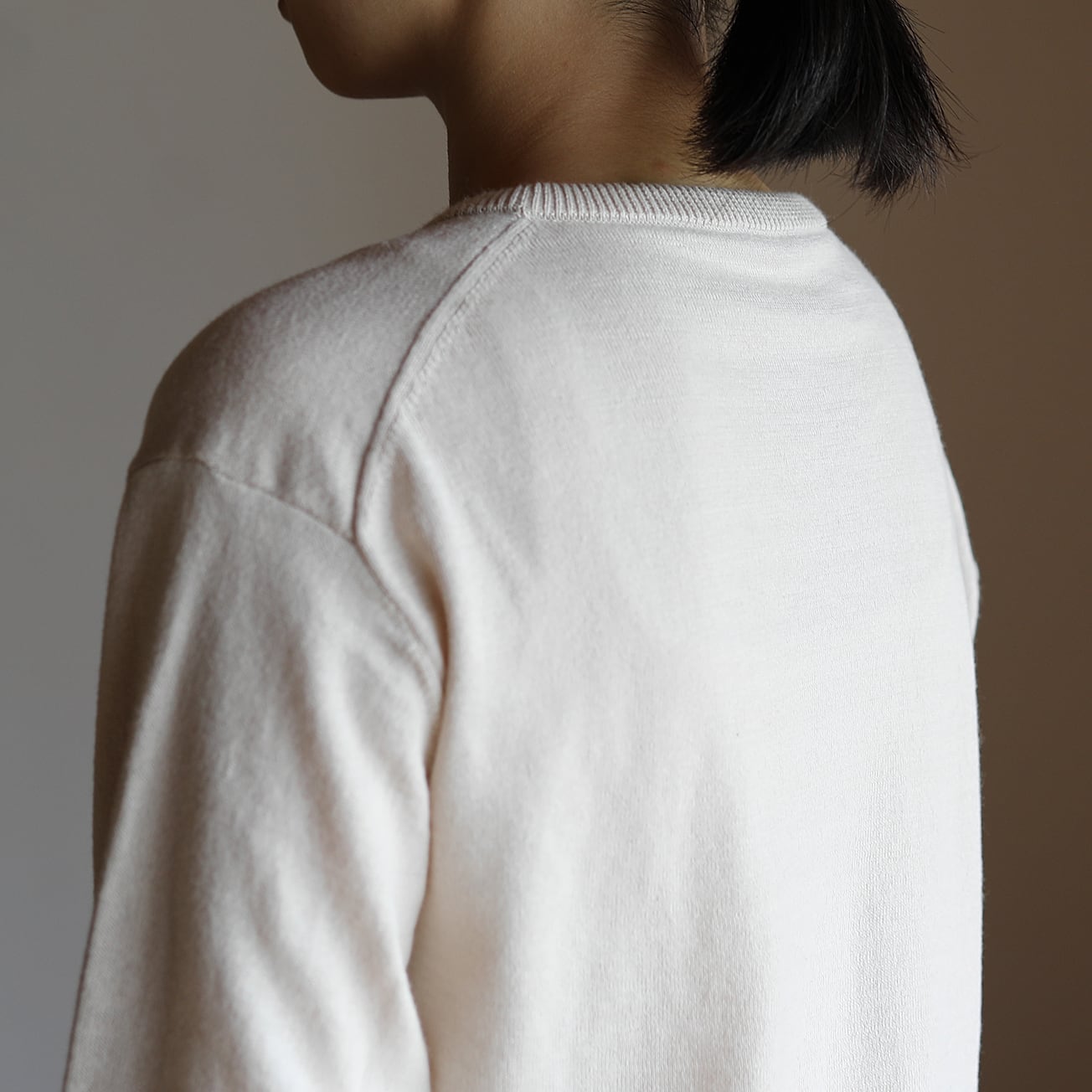 素材は綿90%、カシミヤ10%の混紡糸を使用。