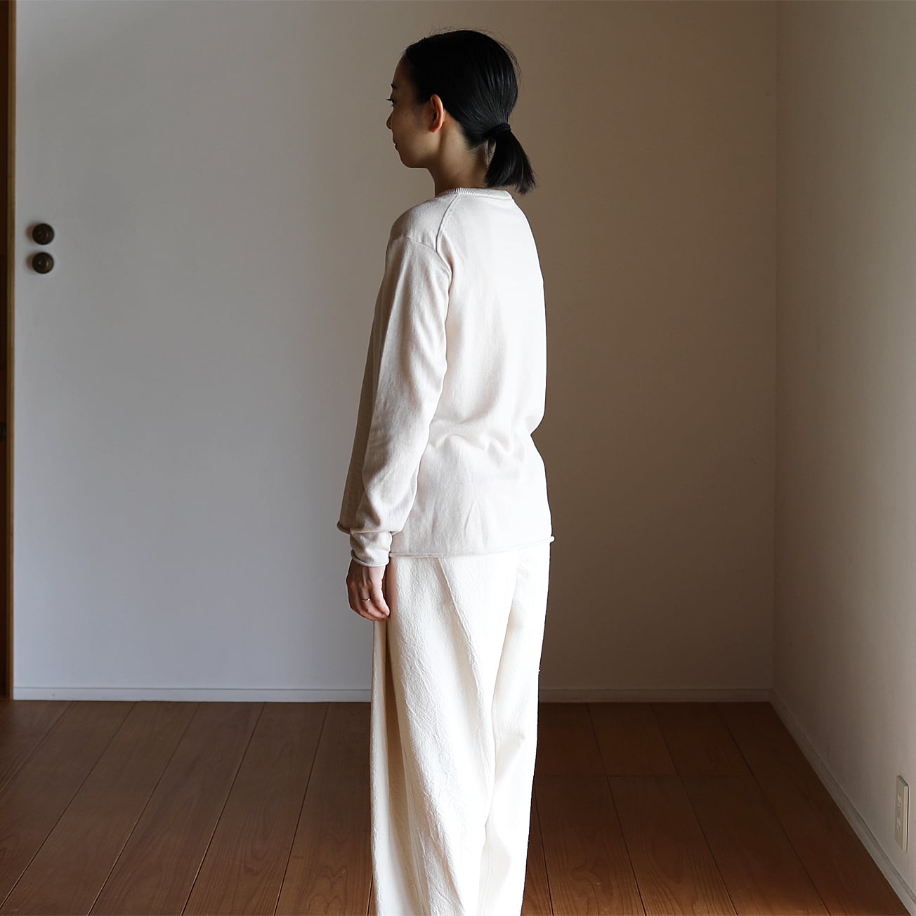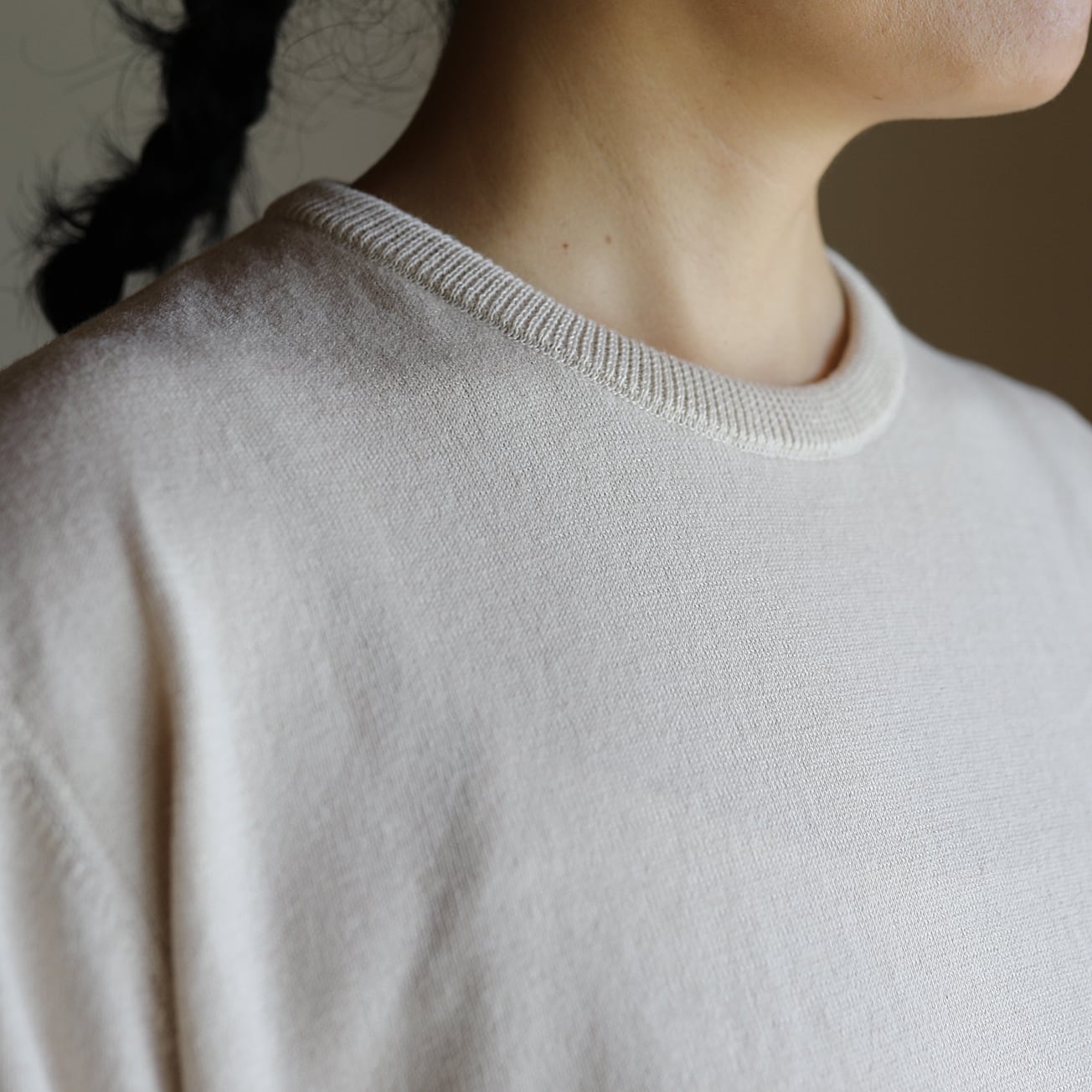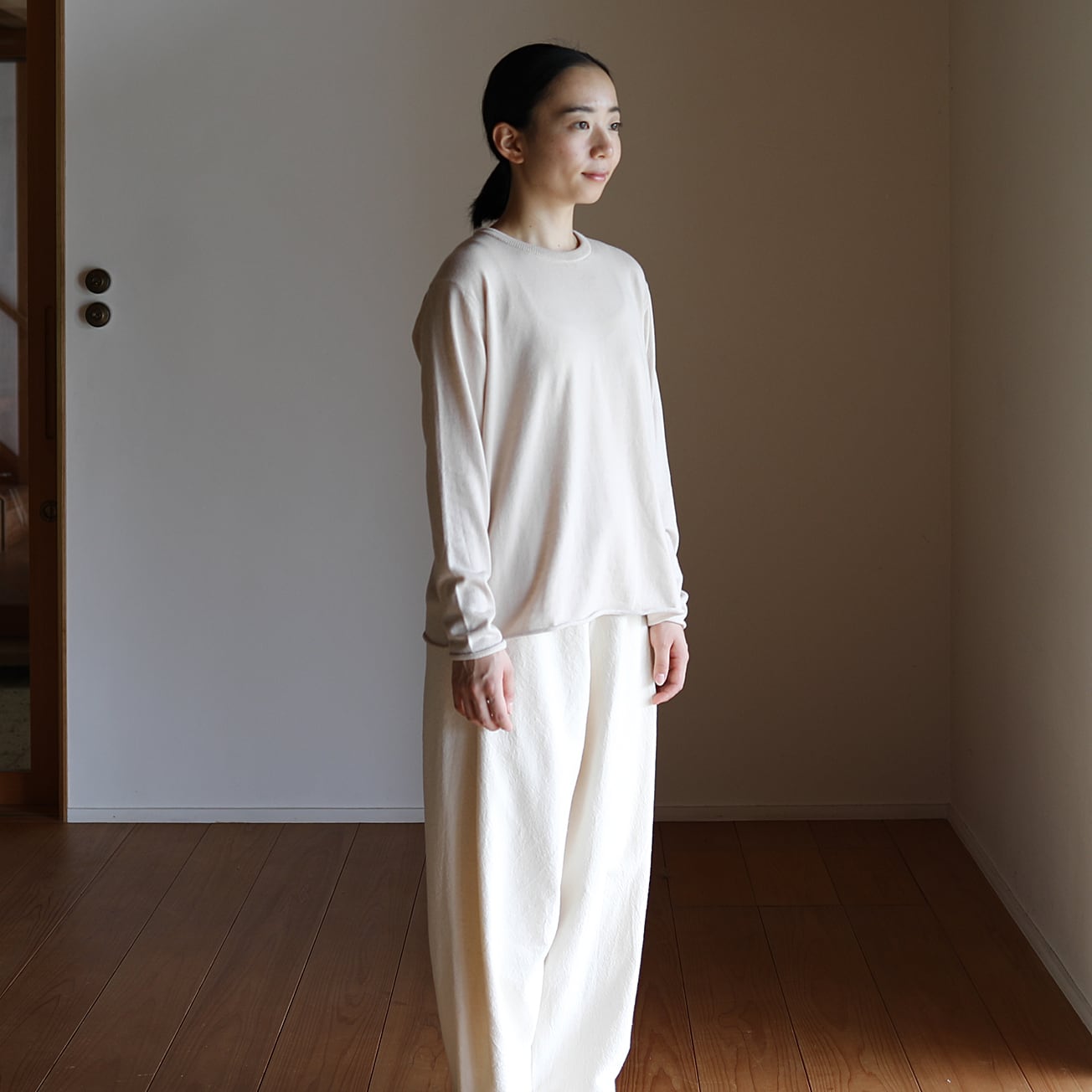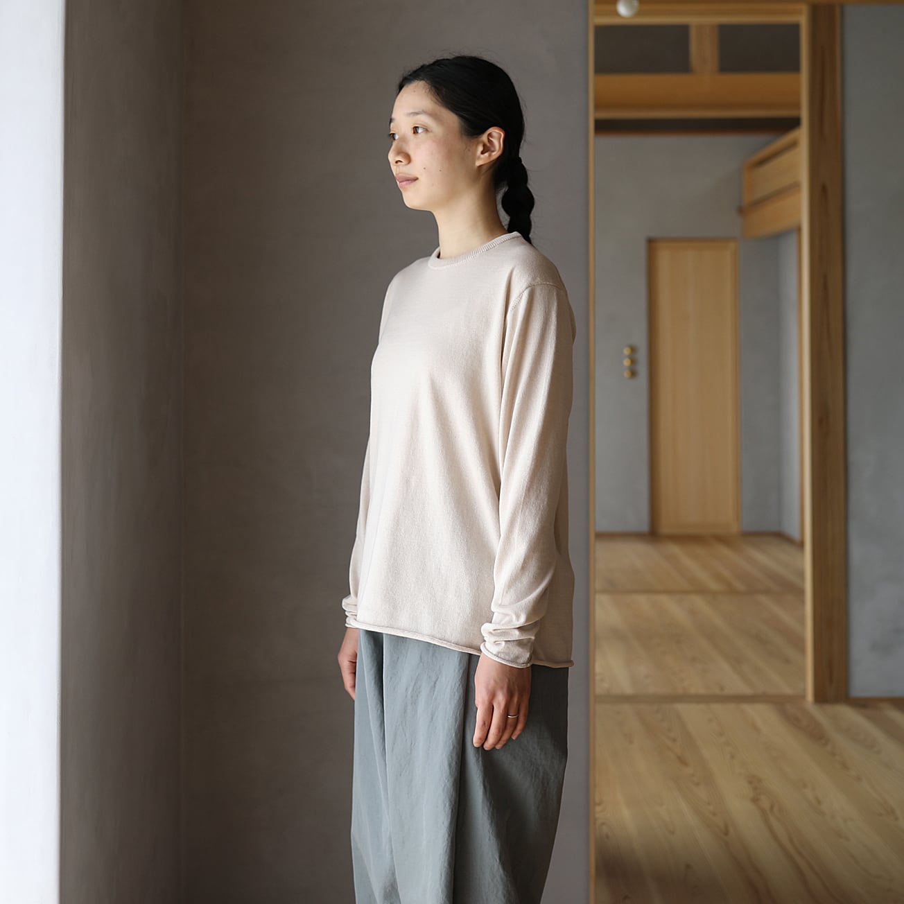 素材は綿90%、カシミヤ10%の混紡糸を使用。