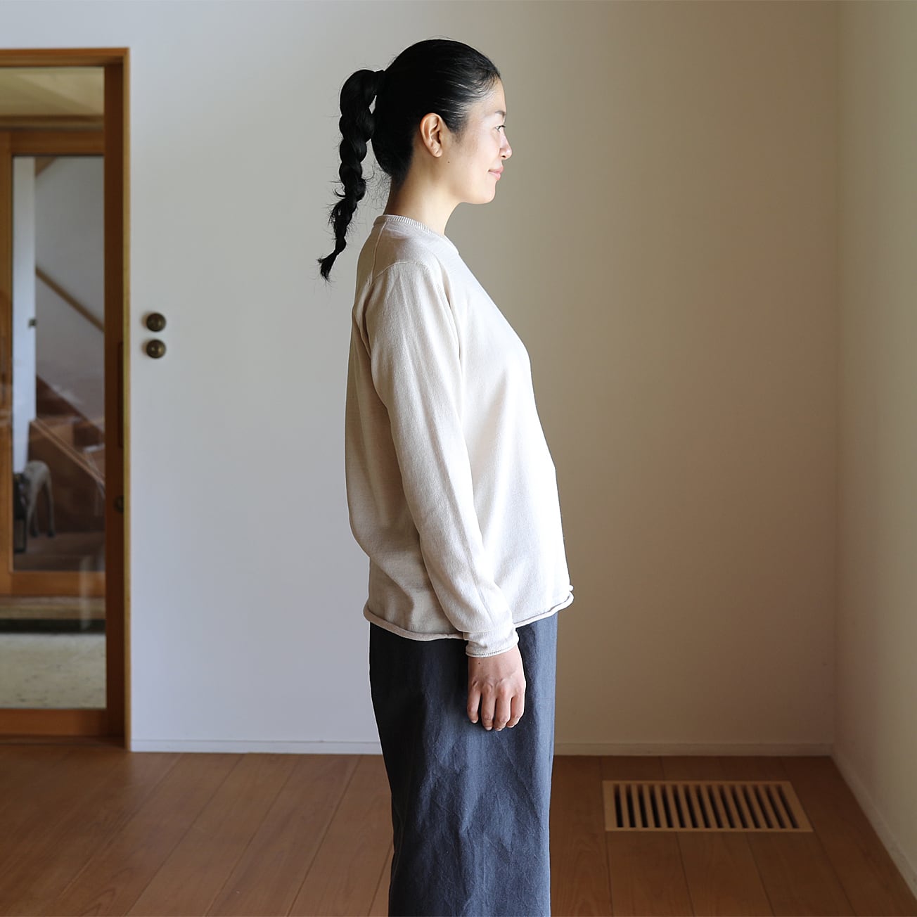 山梨のニット工場の横編み機にて14G(ゲージ)という細めの編地により各パーツを整編。