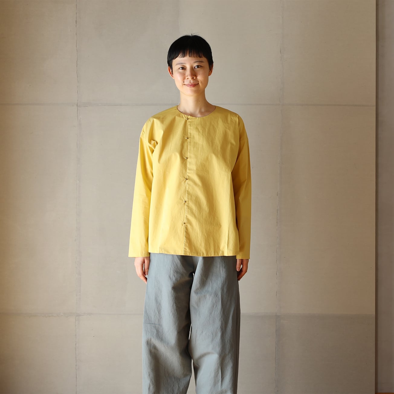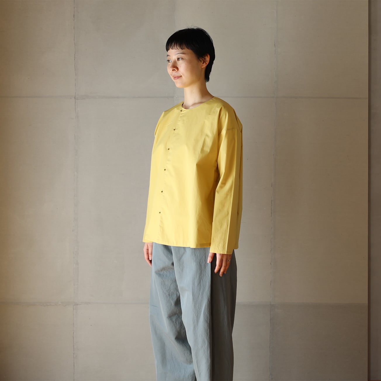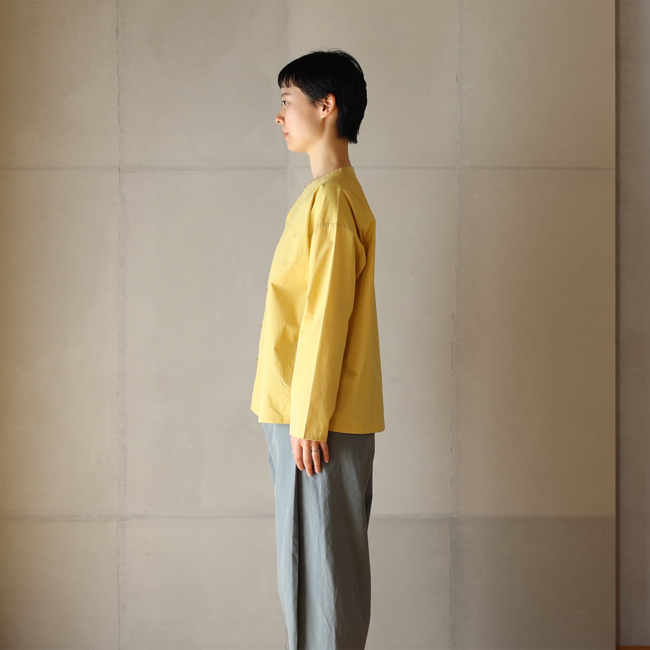 ボタンの位置を少しサイドにずらすことで特長のあるシャツになりました。