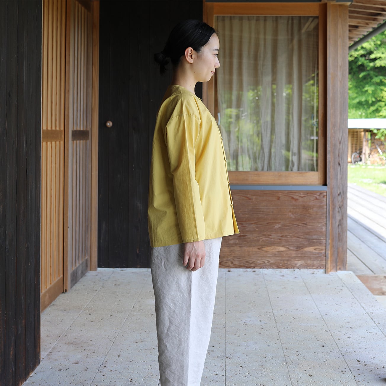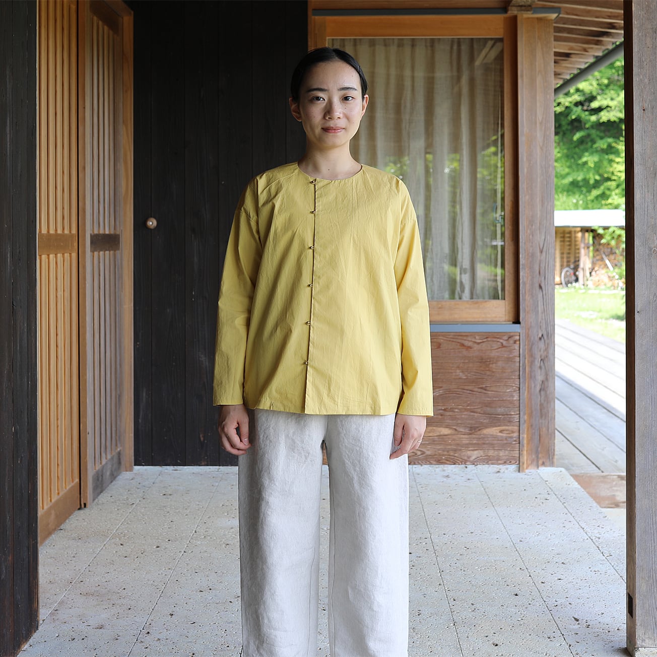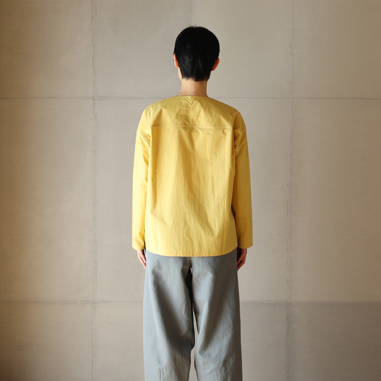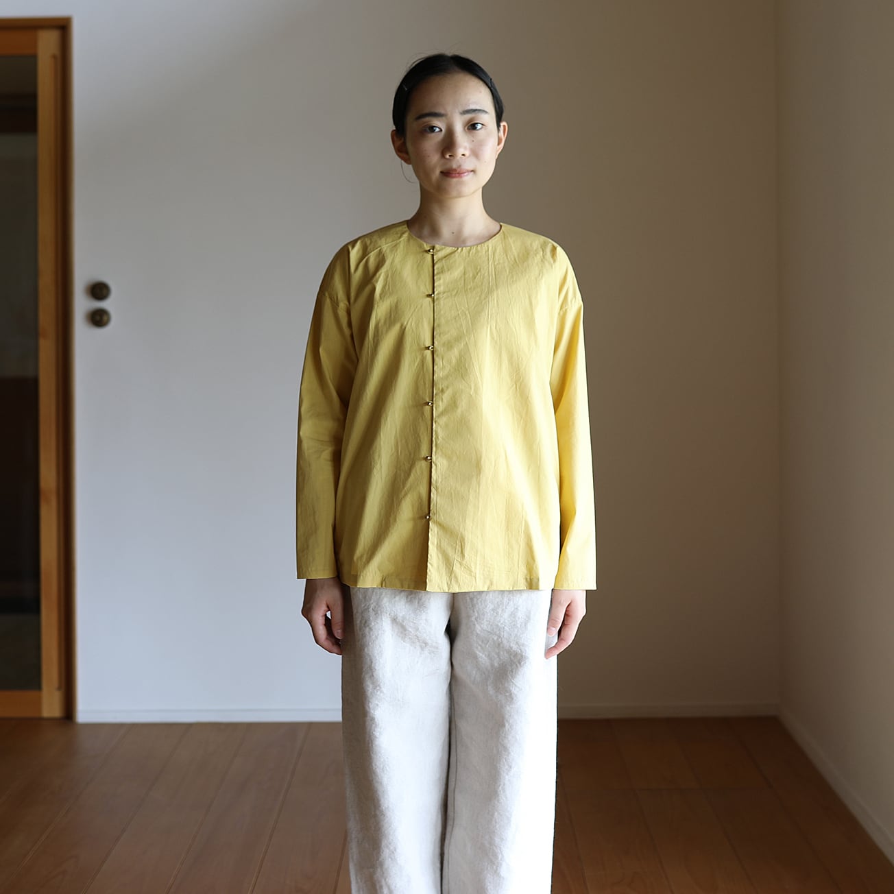 ボタンの位置を少しサイドにずらすことで特長のあるシャツになりました。