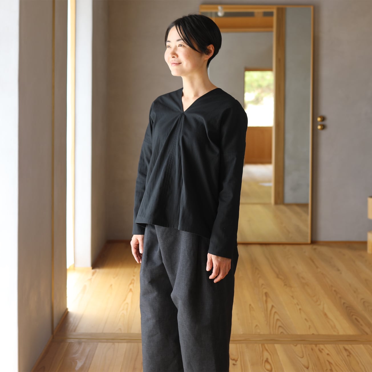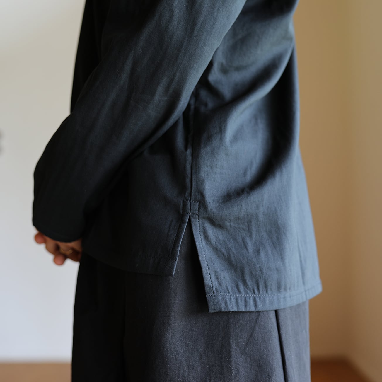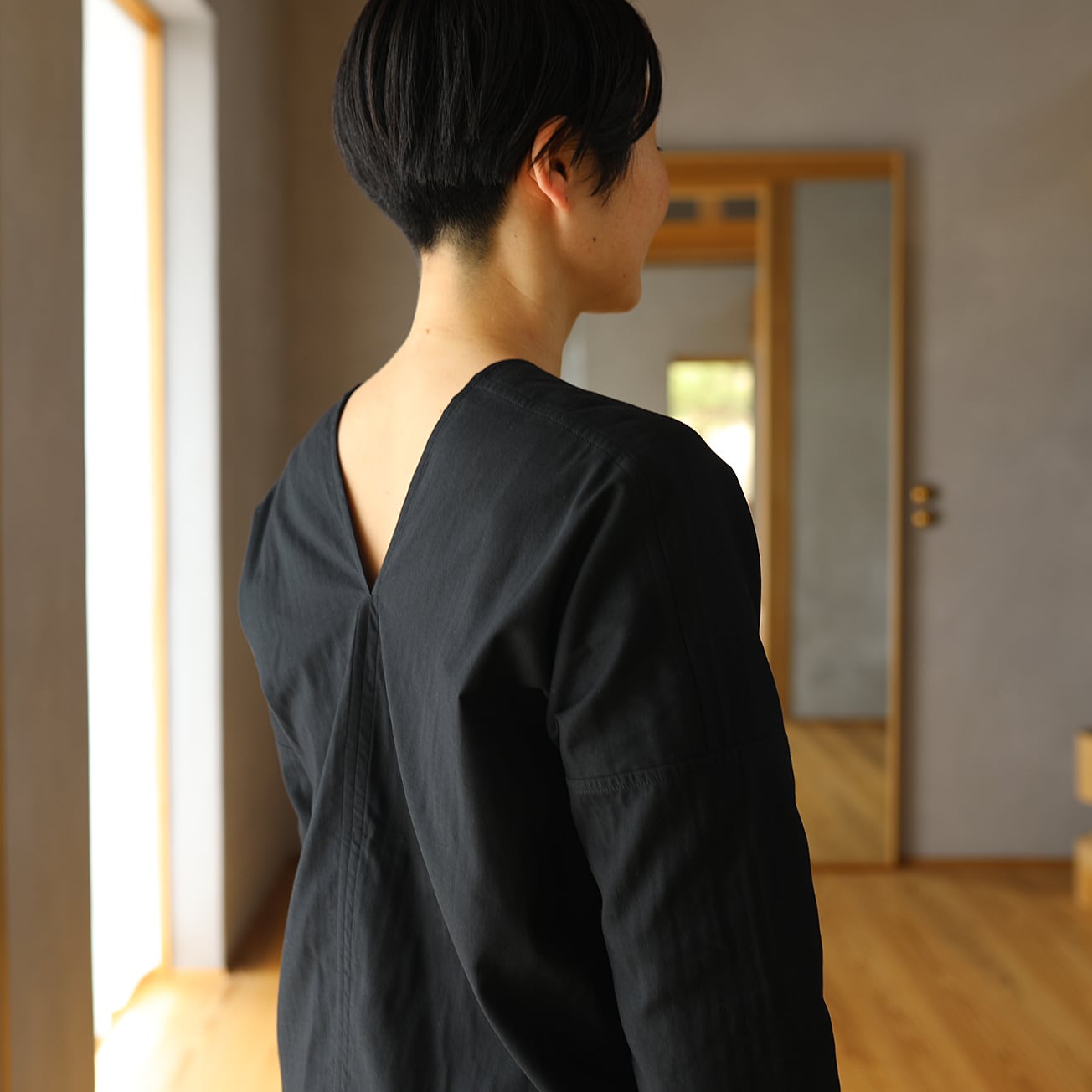 生地は浜松で織られた2重織のコットンを黒に反染め。