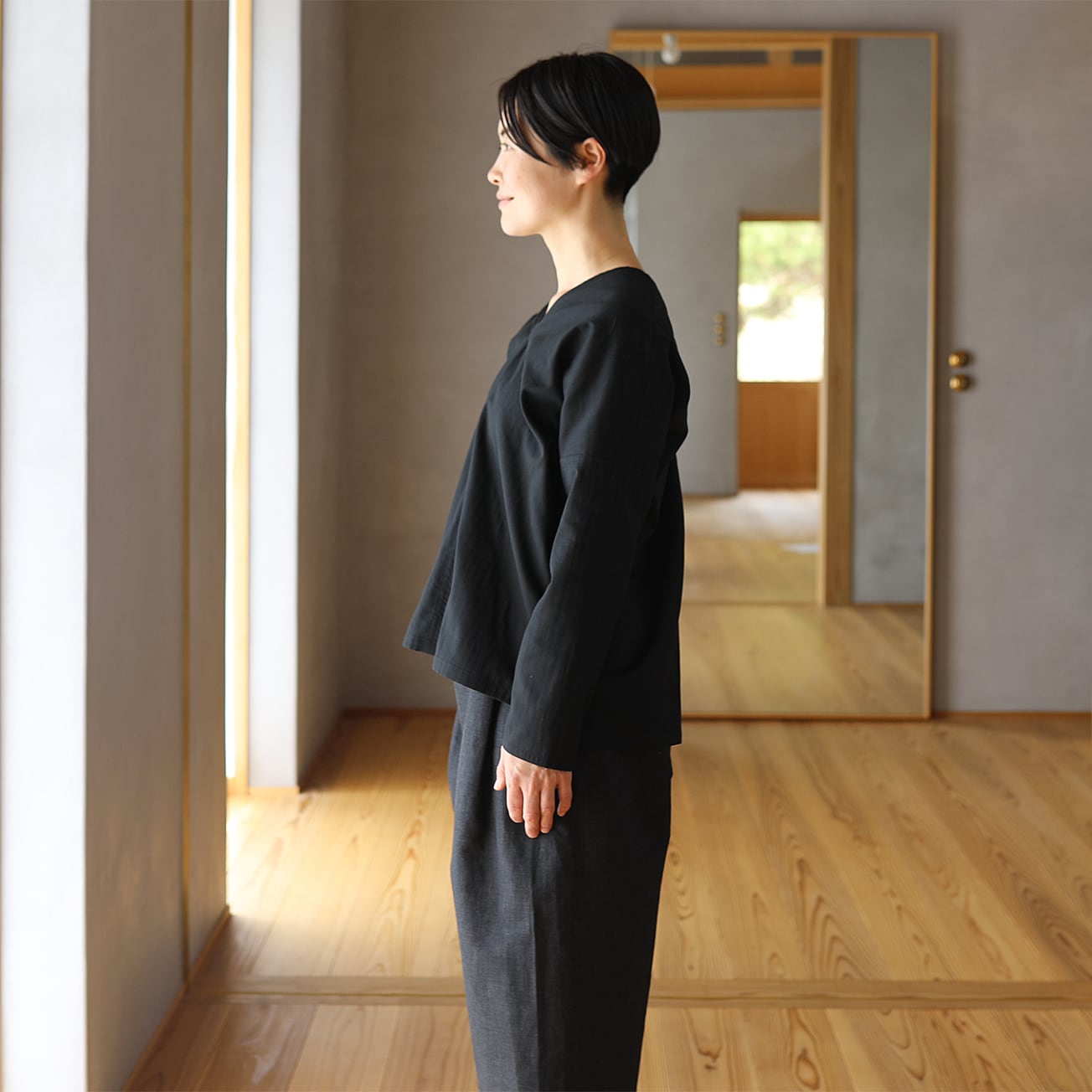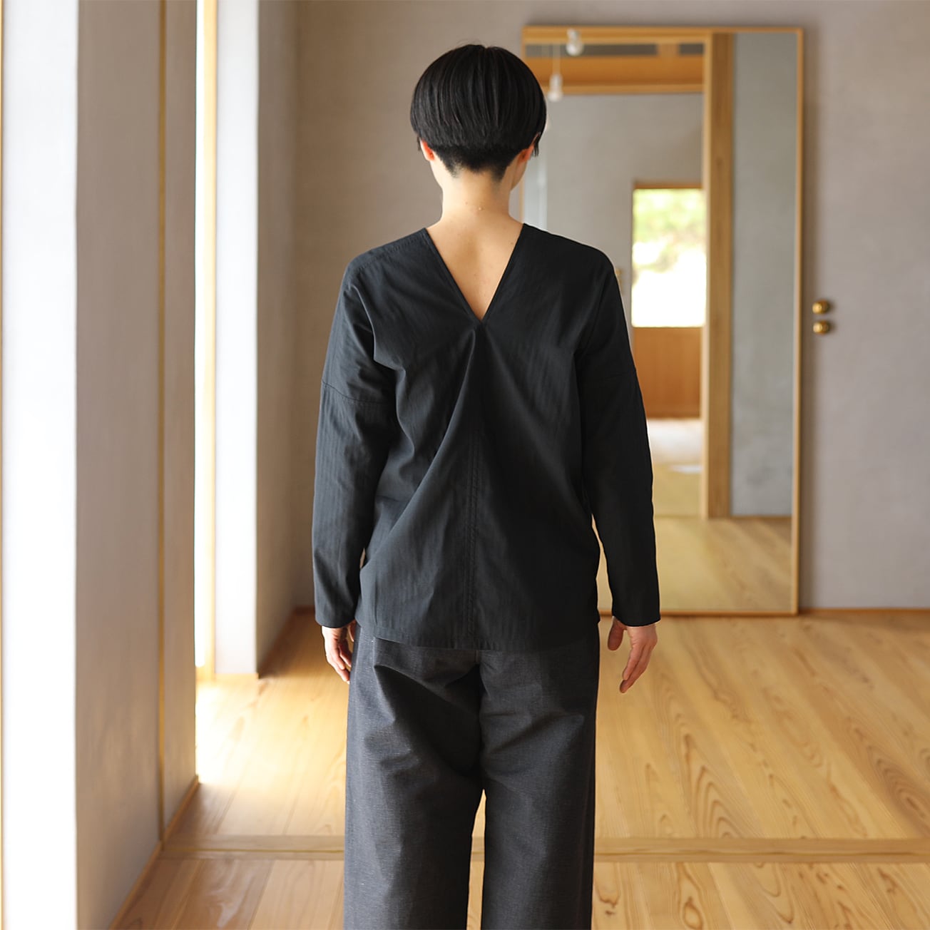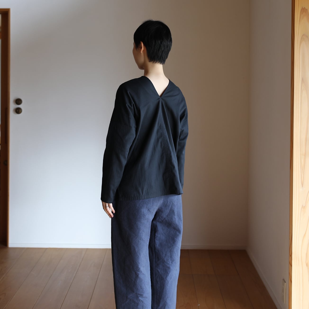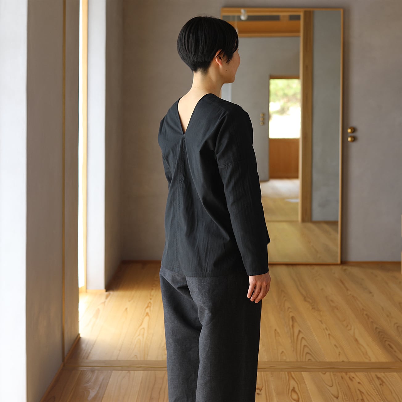 生地は浜松で織られた2重織のコットンを黒に反染め。
