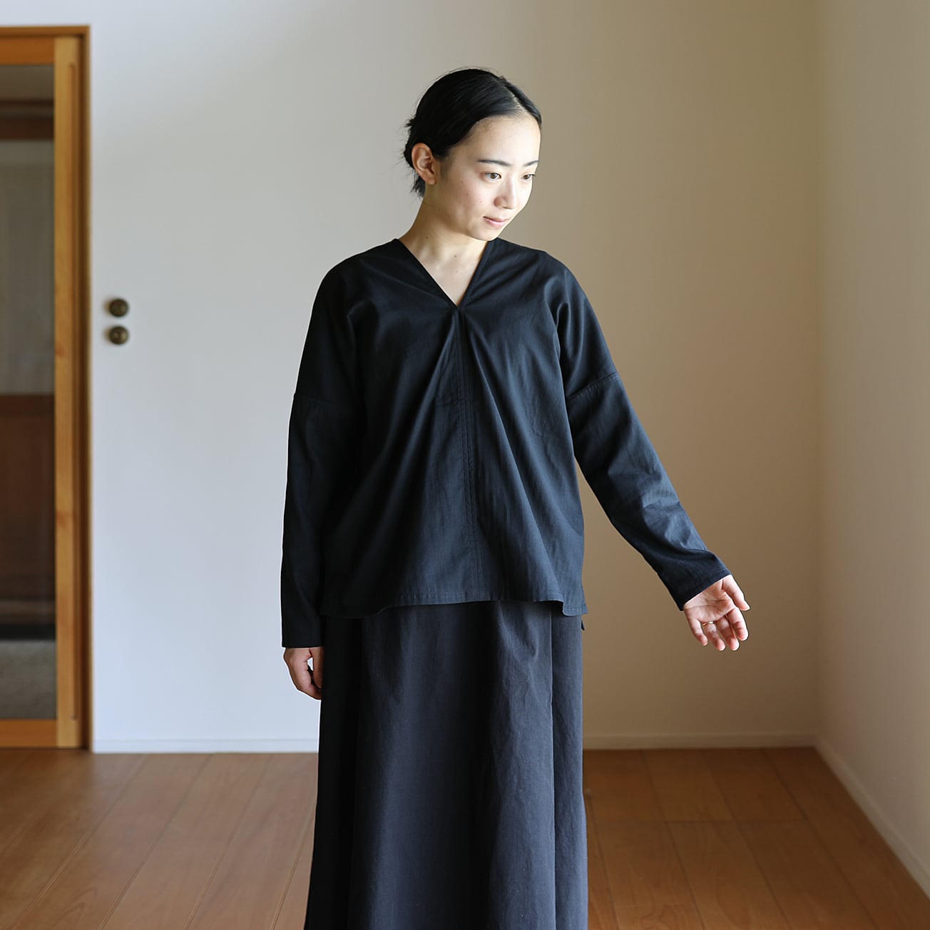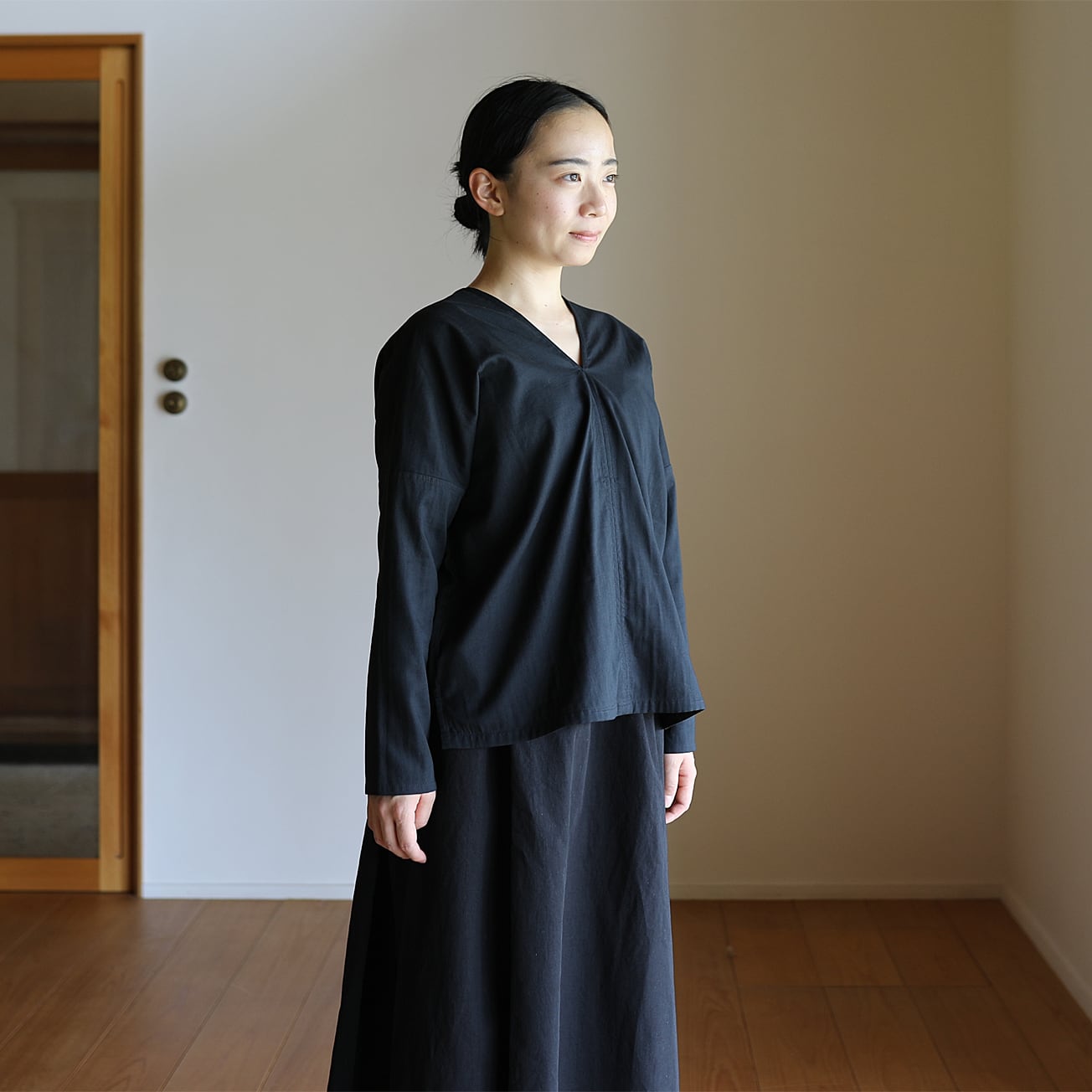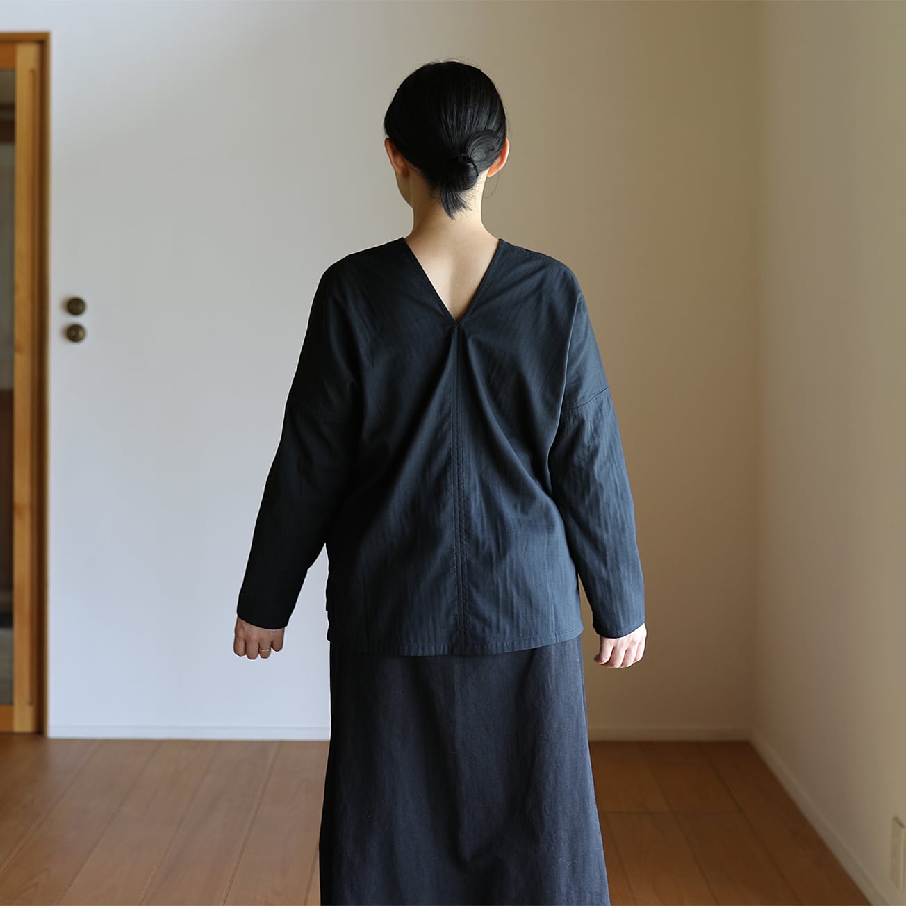 後ろ身頃は丈を長くしているため、しゃがんでも背中が出ないようにしました。