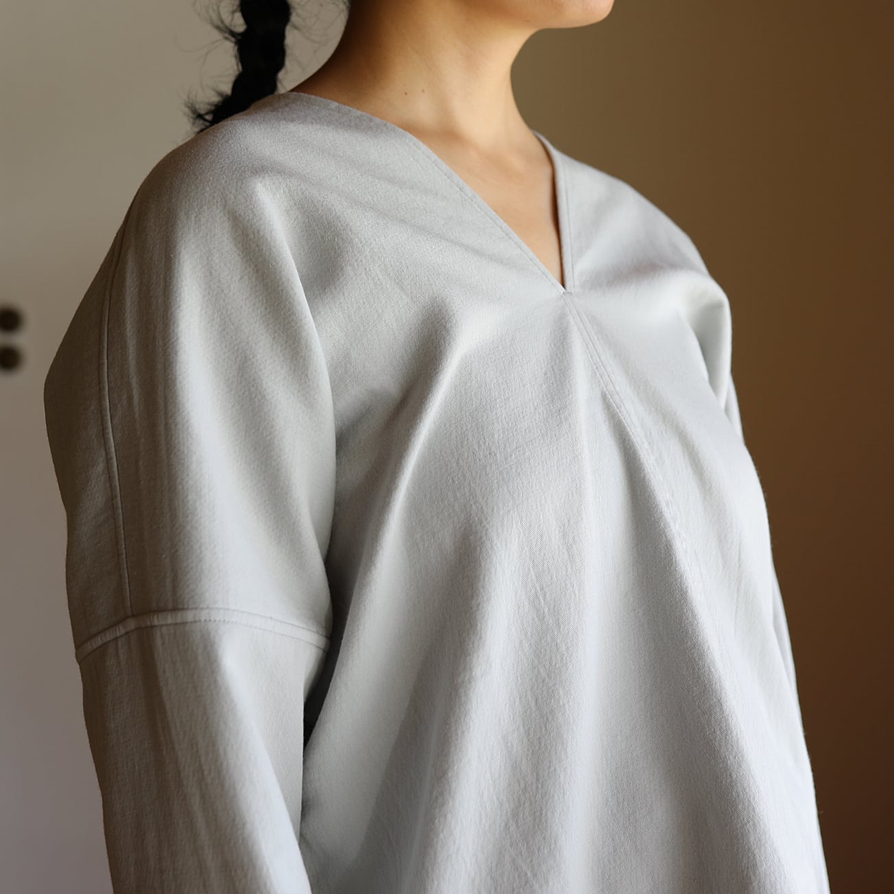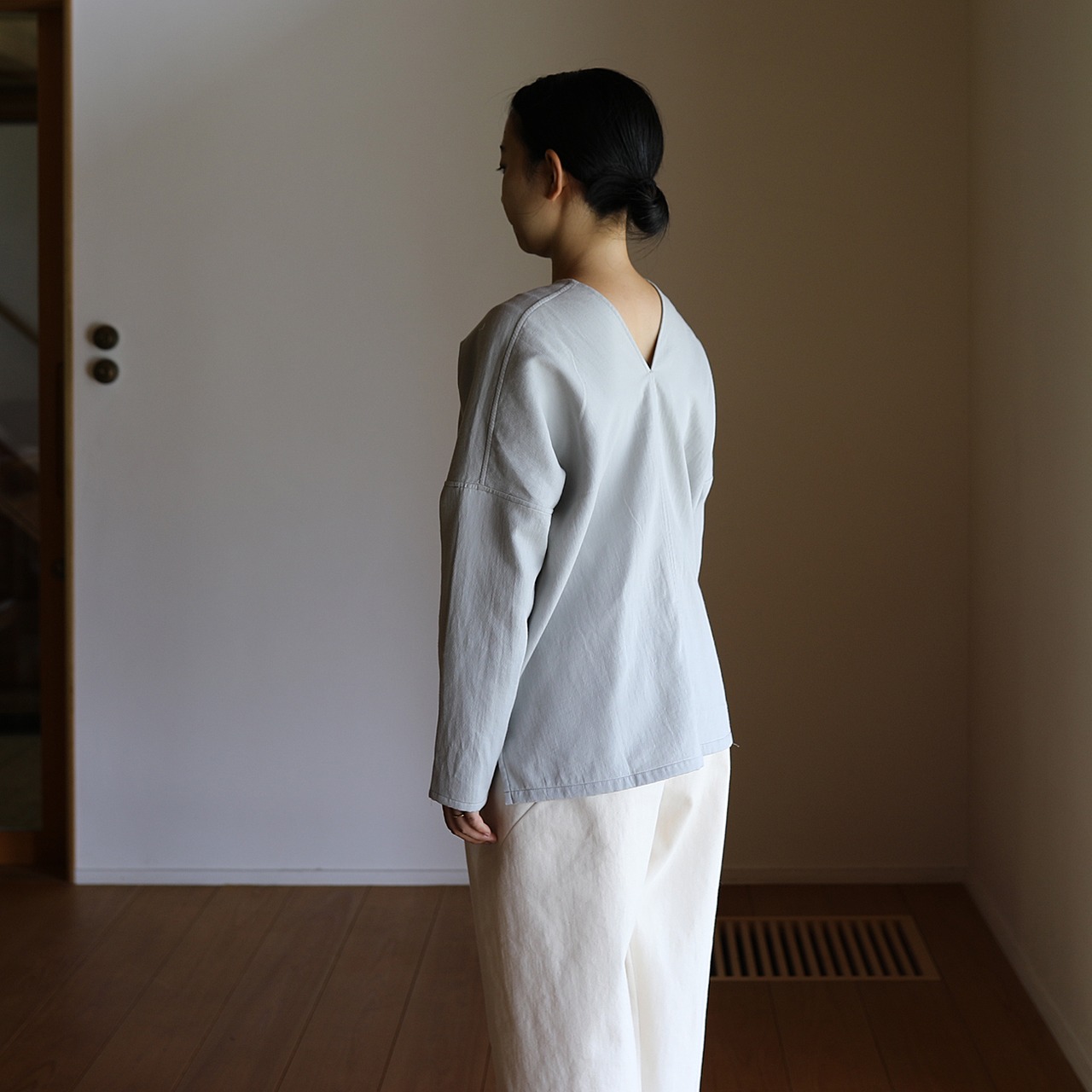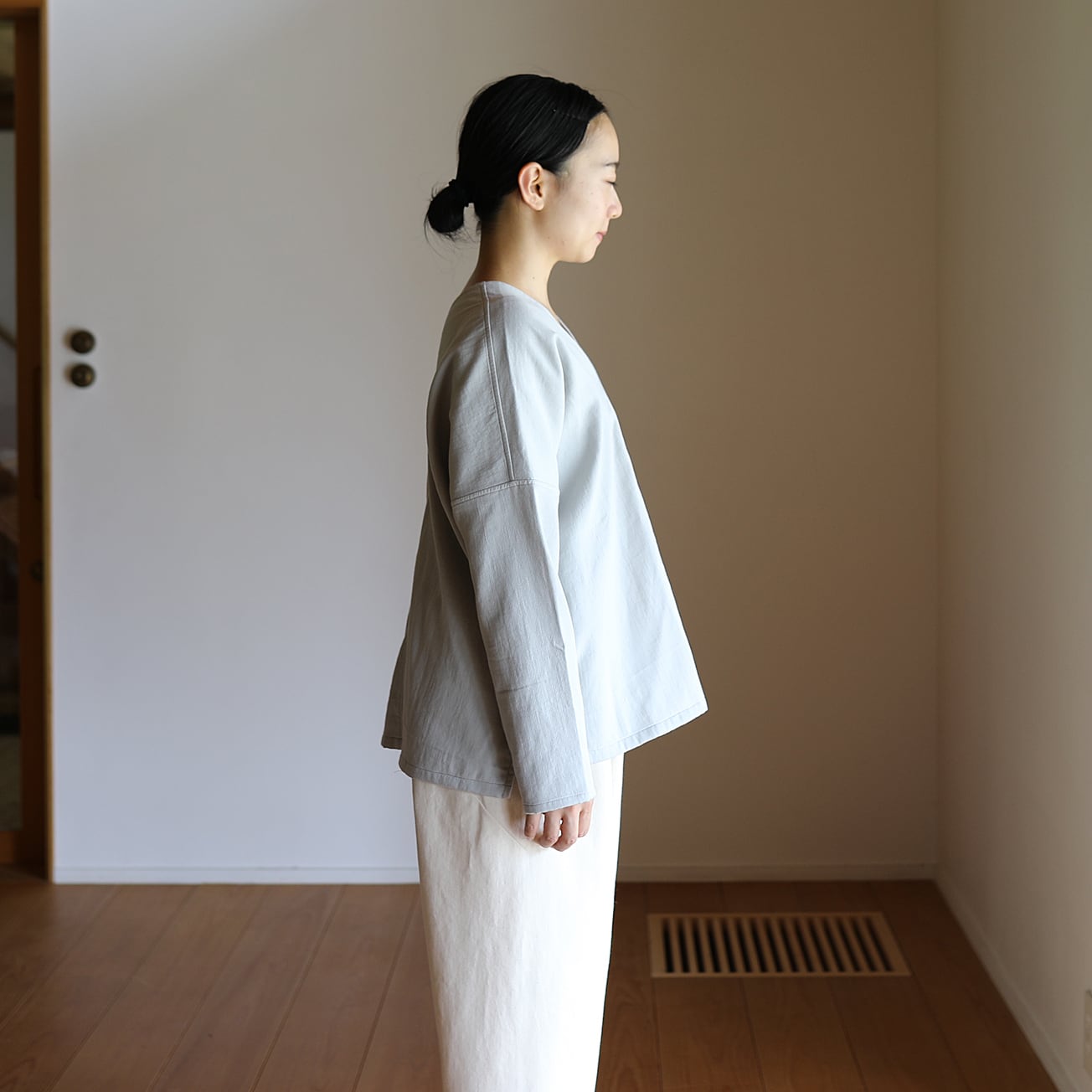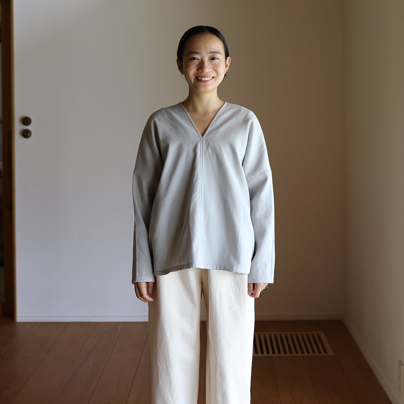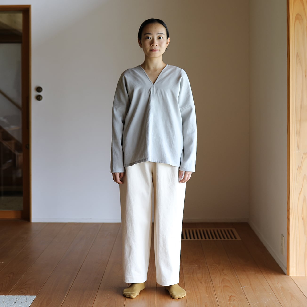 後ろ身頃は丈を長くしているため、しゃがんでも背中が出ないようにしました。