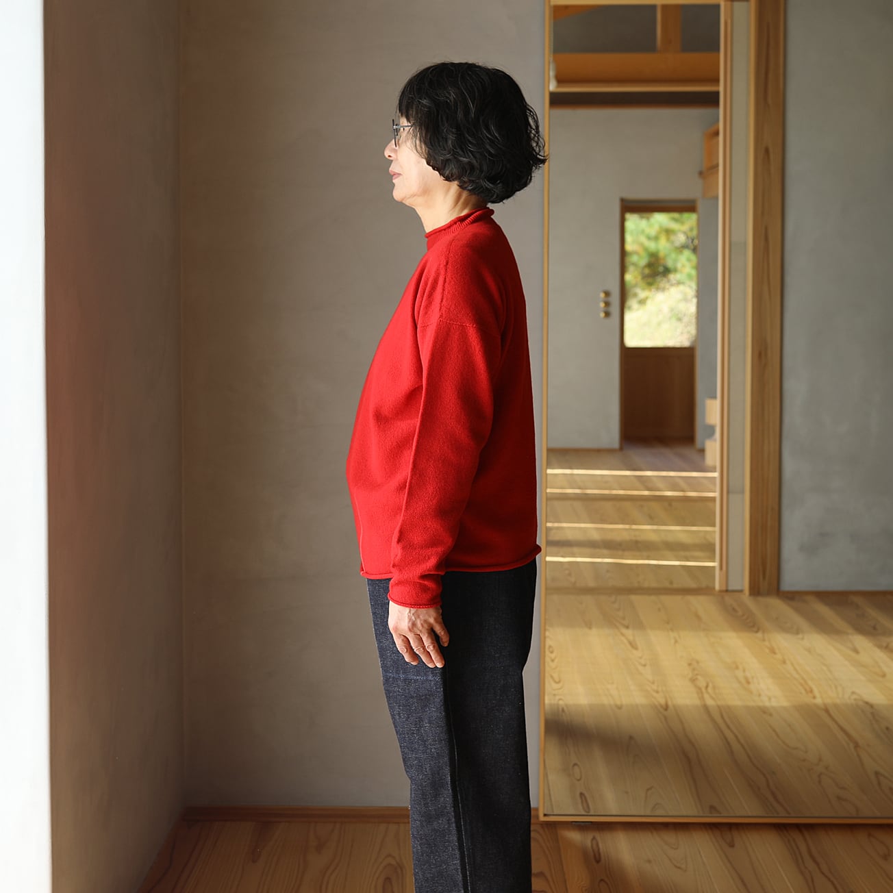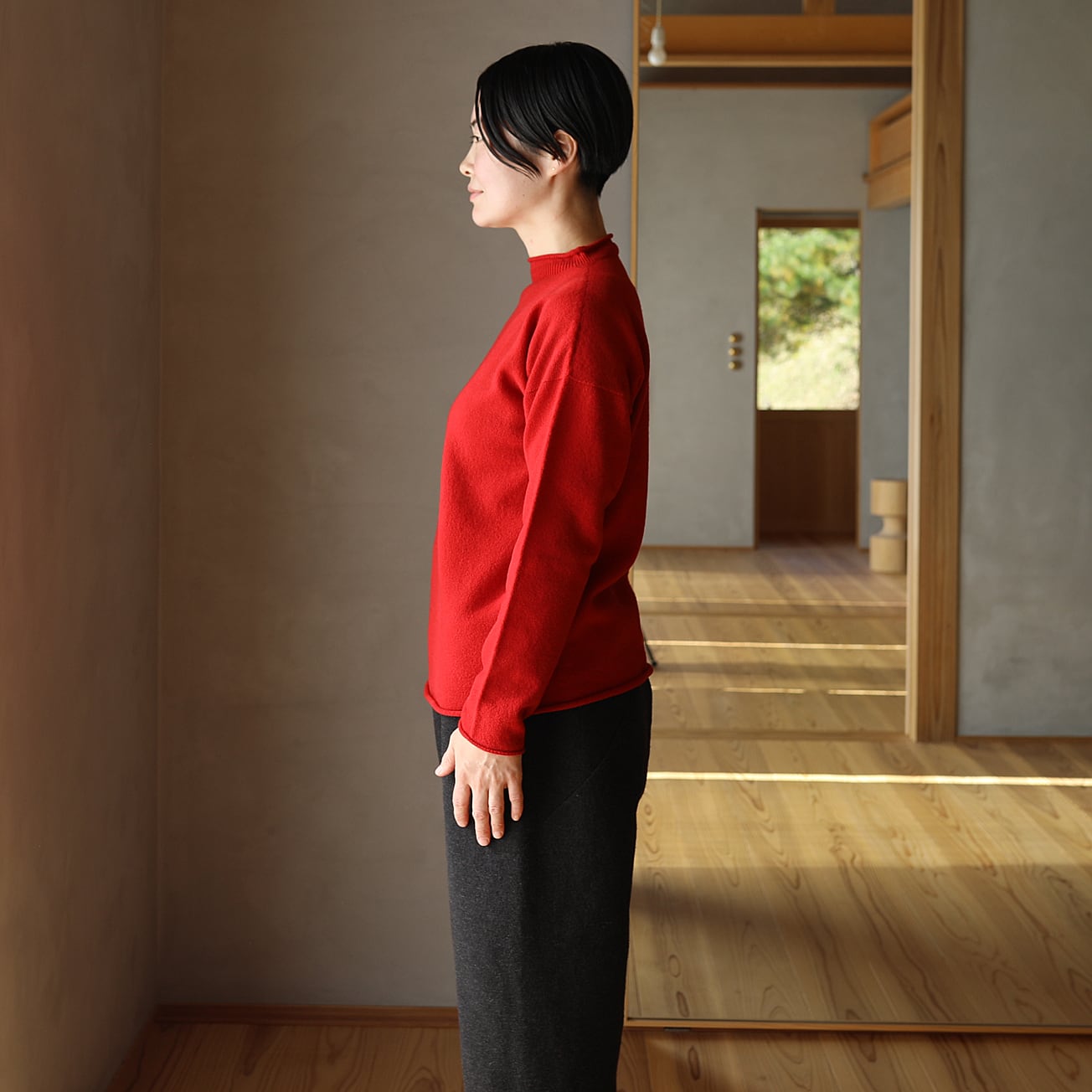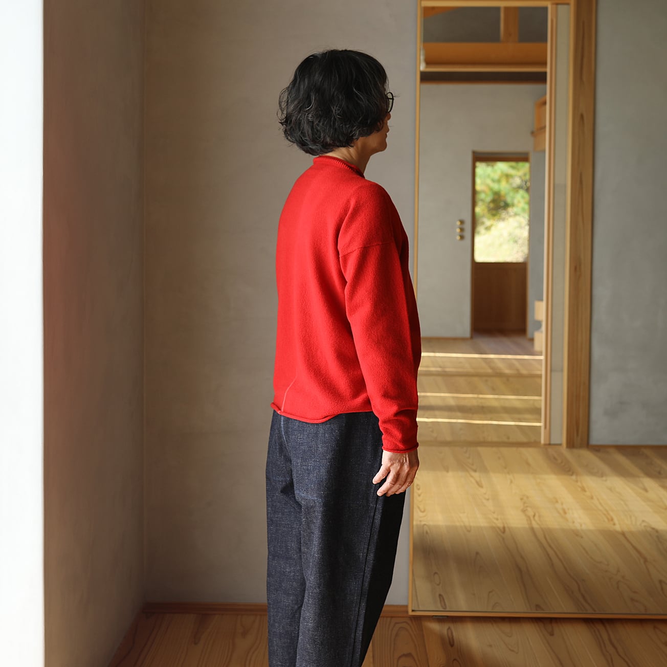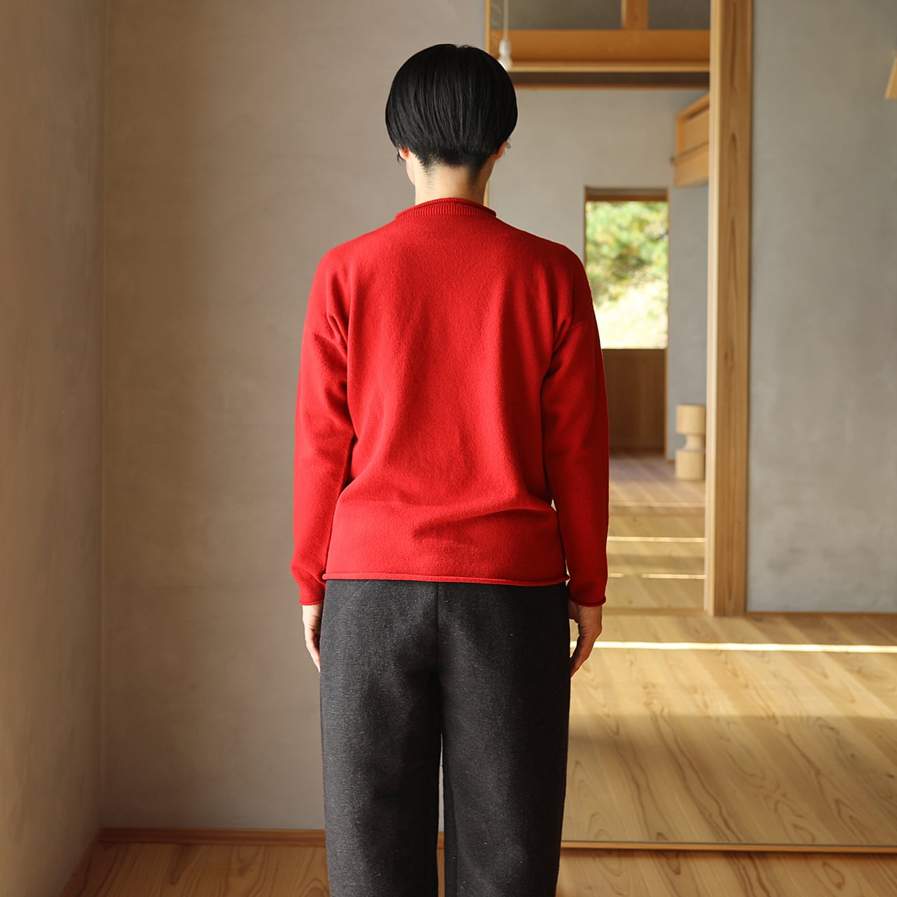 昔ながらのフィッシャーマンセーターをモチーフに、シンプルな形ながら立ち上げた襟ぐりやくるりとなった襟、袖口、裾が特徴です。