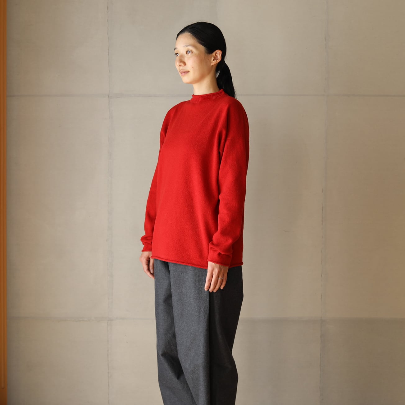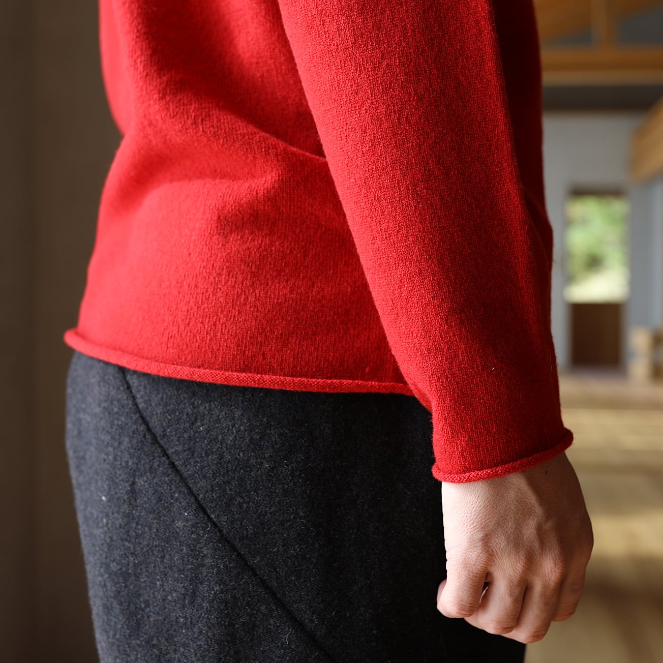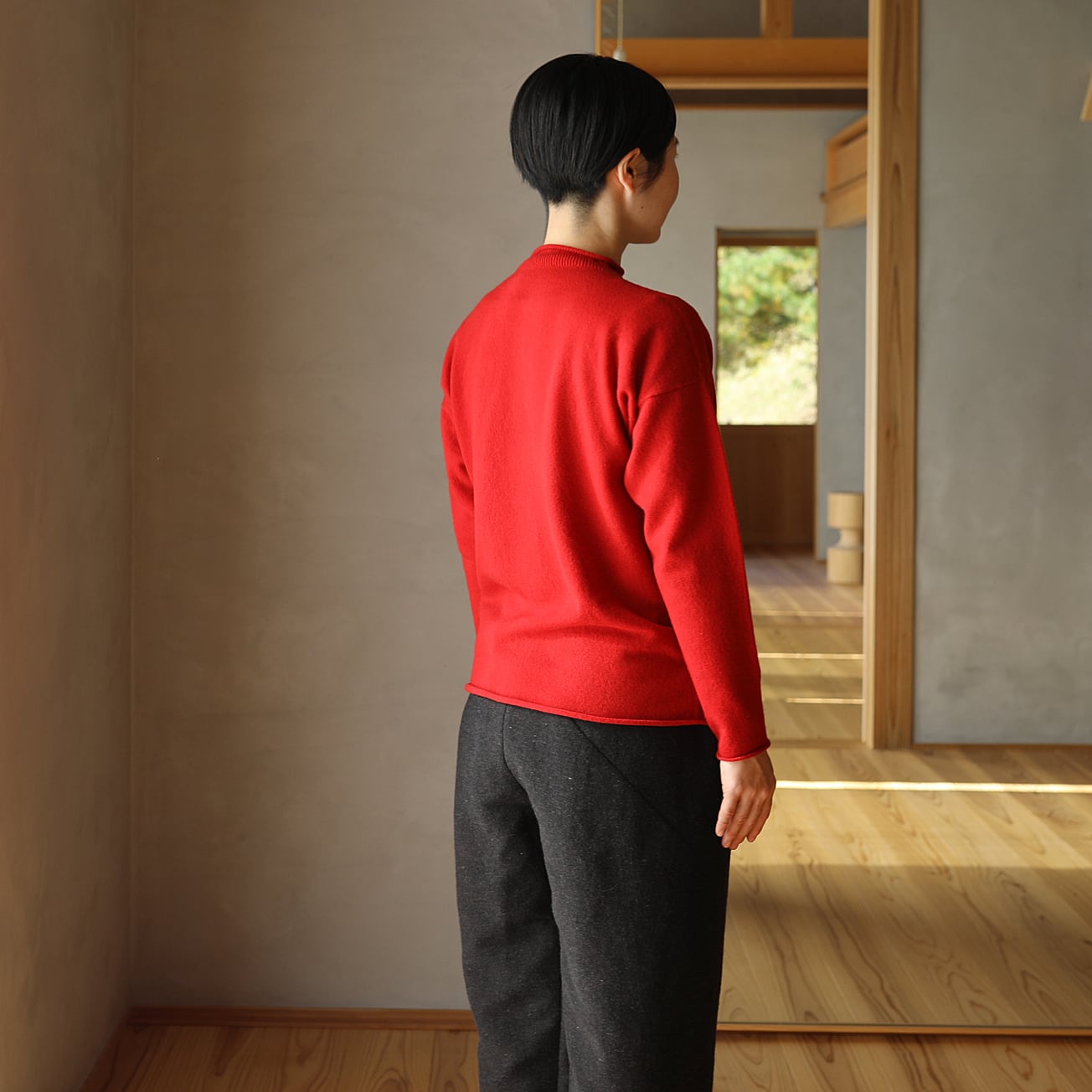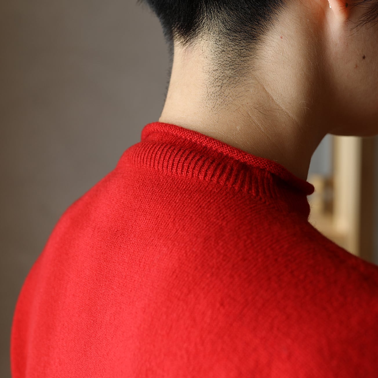 昔ながらのフィッシャーマンセーターをモチーフに、シンプルな形ながら立ち上げた襟ぐりやくるりとなった襟、袖口、裾が特徴です。