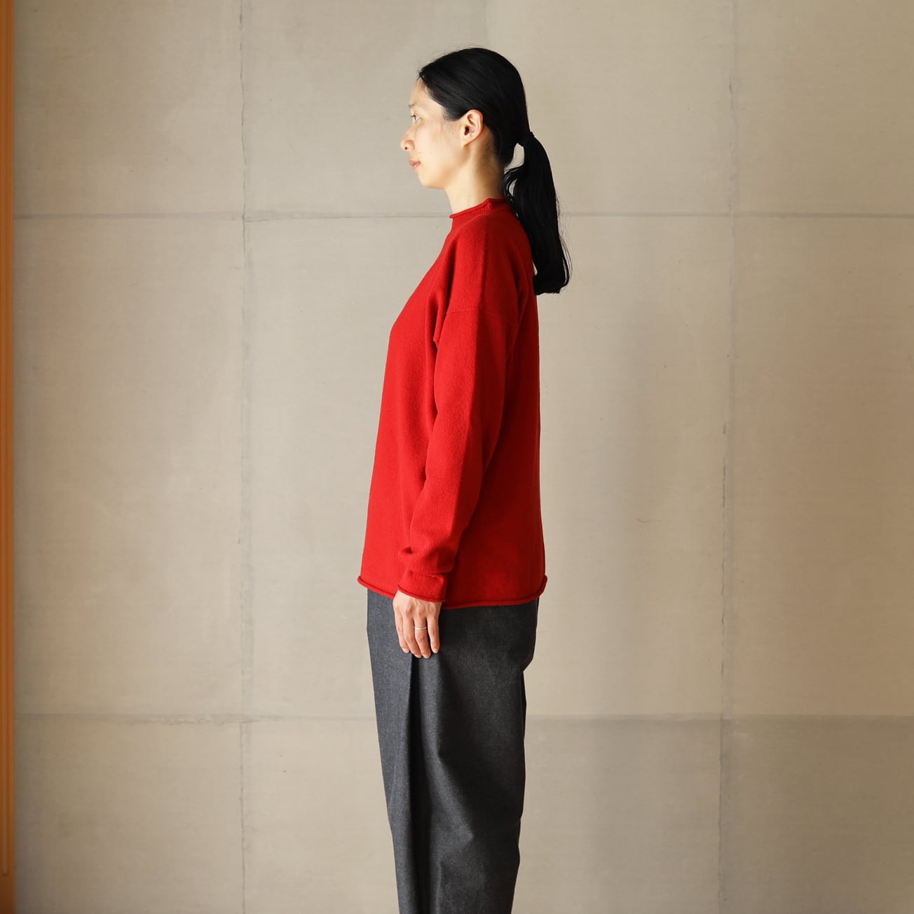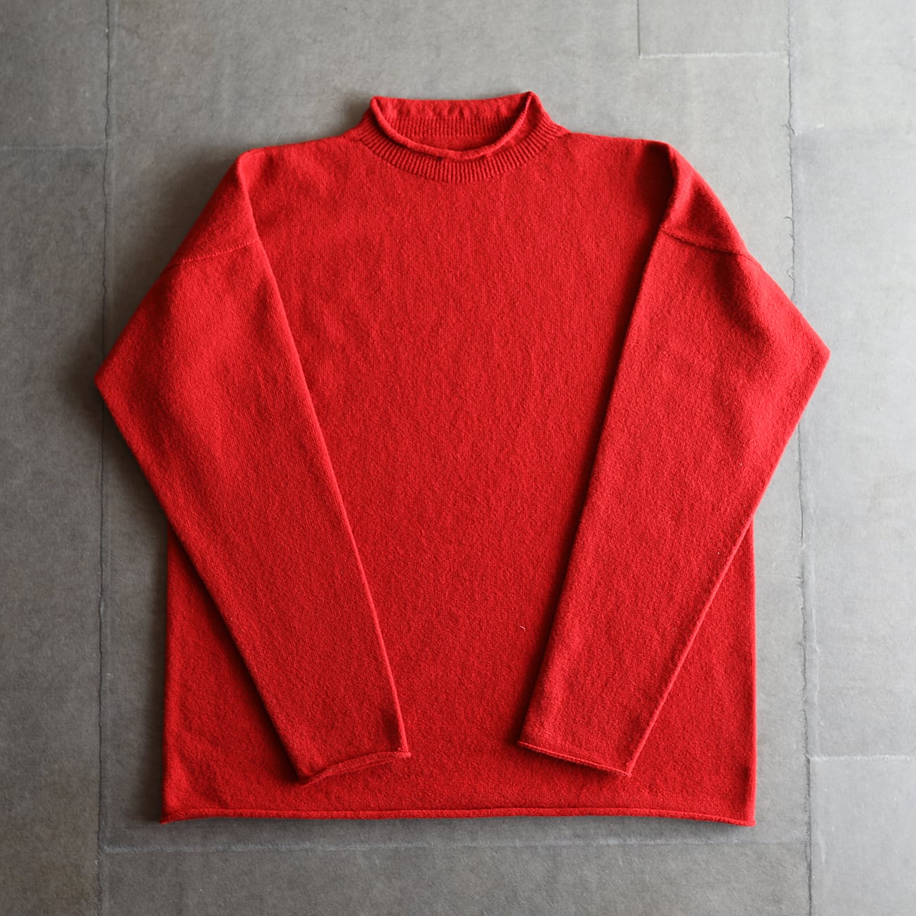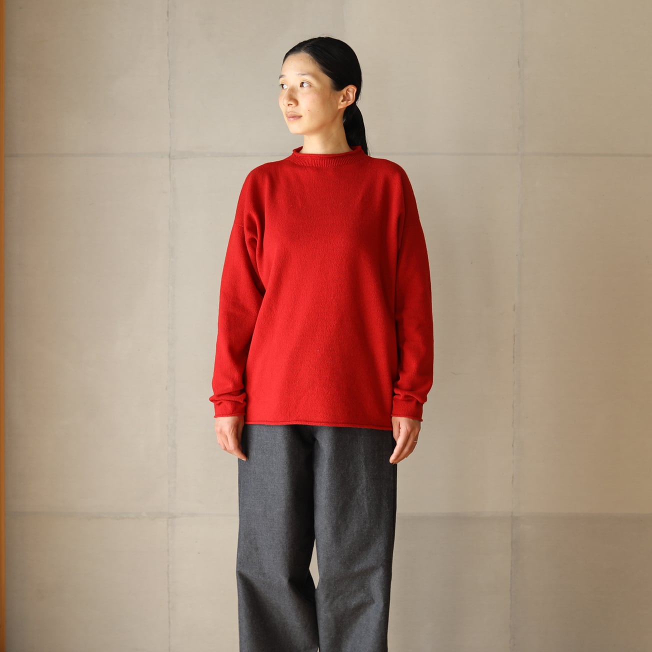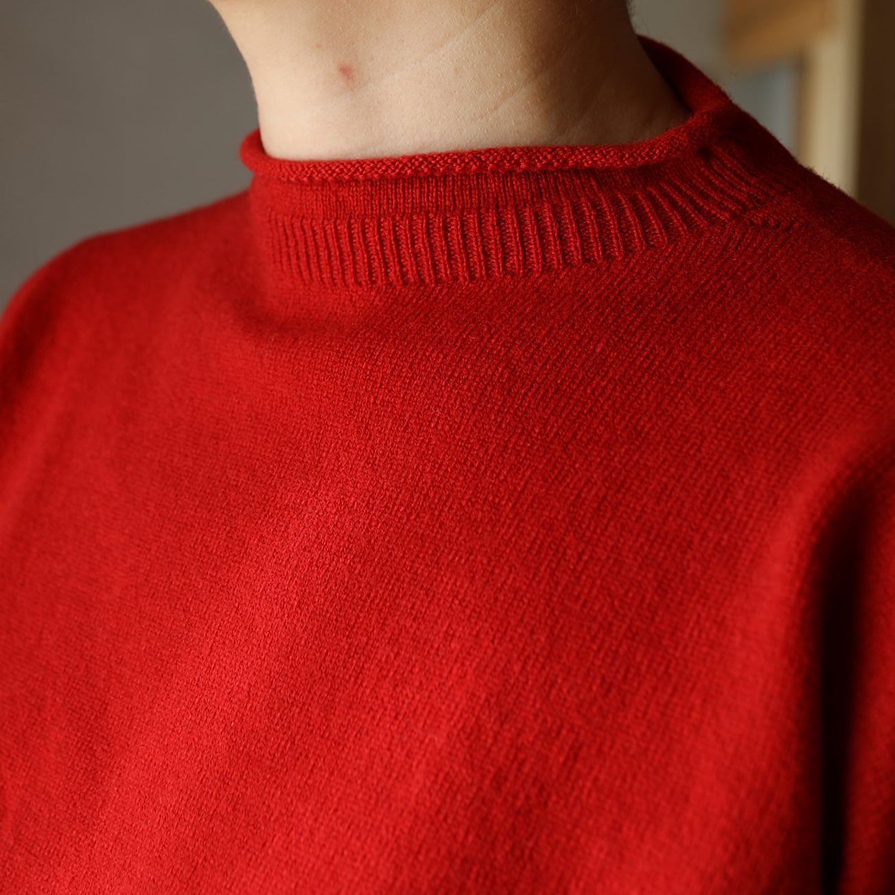 昔ながらのフィッシャーマンセーターをモチーフに、シンプルな形ながら立ち上げた襟ぐりやくるりとなった襟、袖口、裾が特徴です。