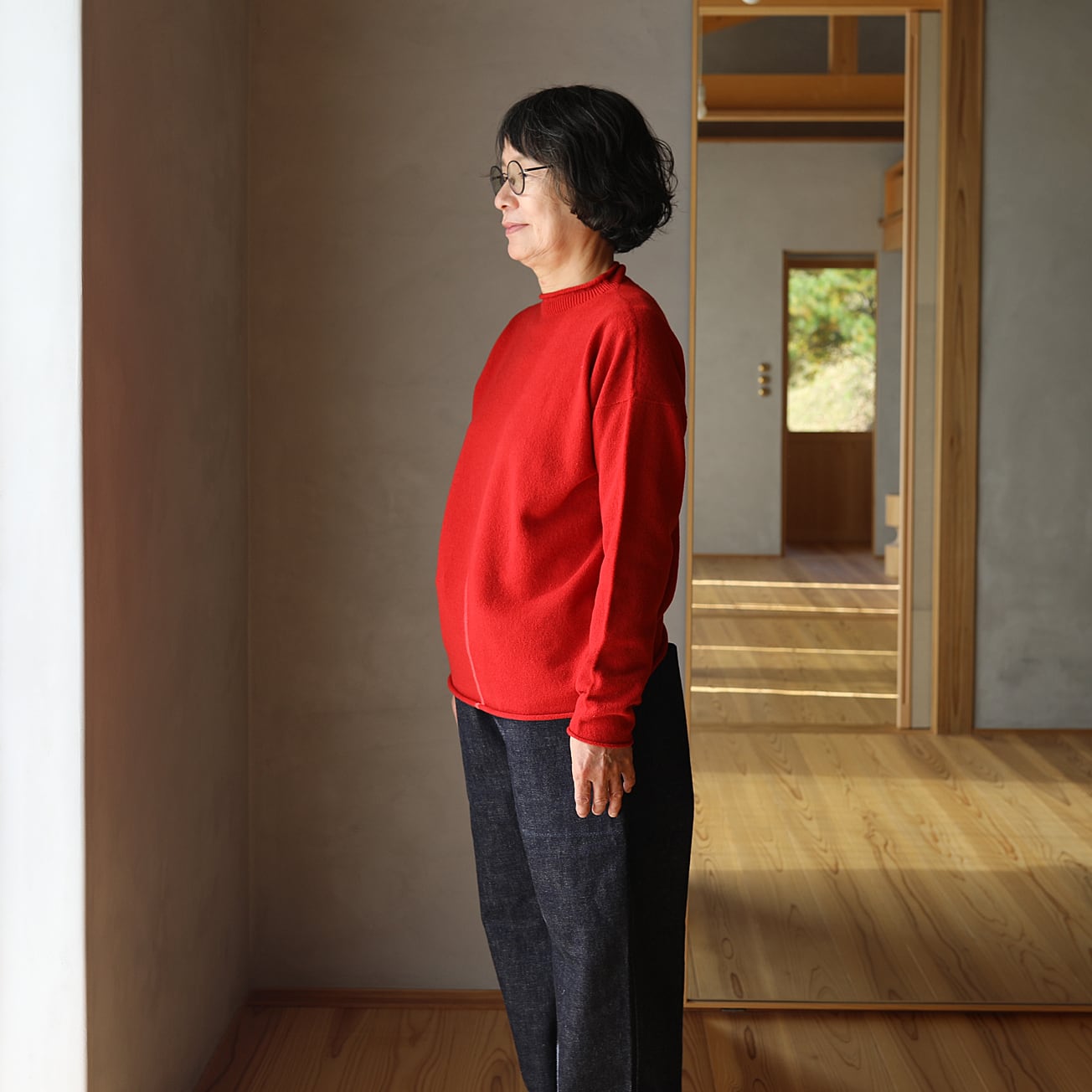 東京八王子のニット工場にてホールガーメント製編にて作りました。