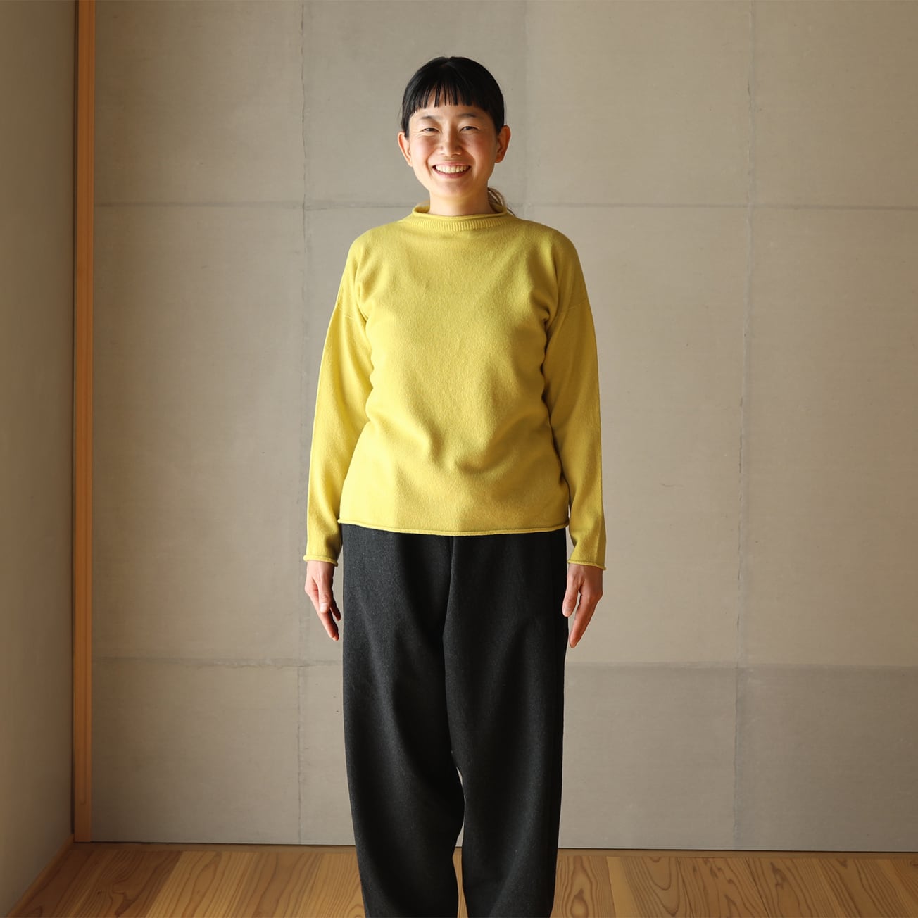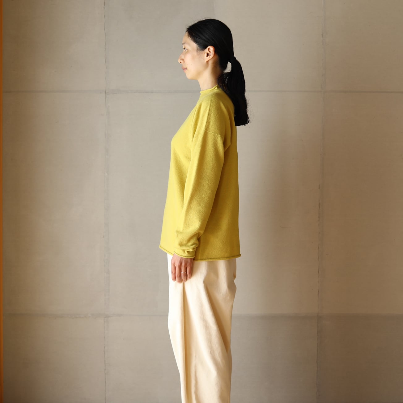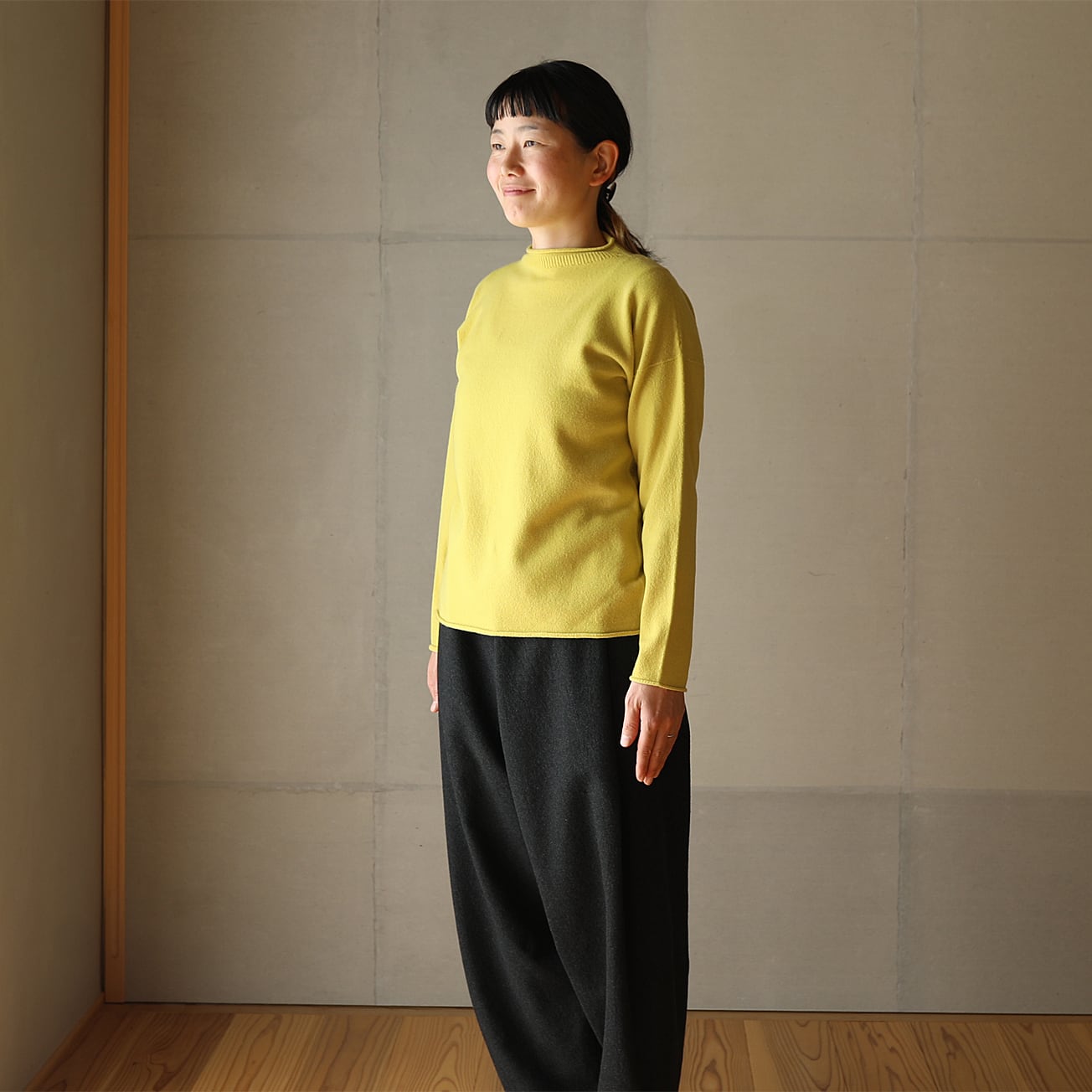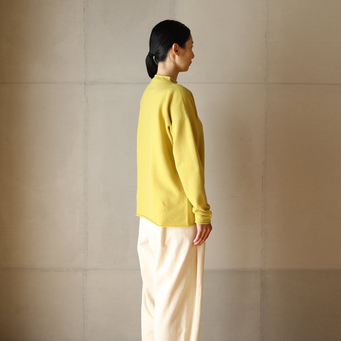 東京八王子のニット工場にてホールガーメント製編にて作りました。